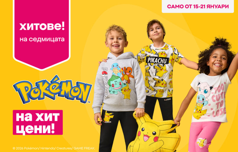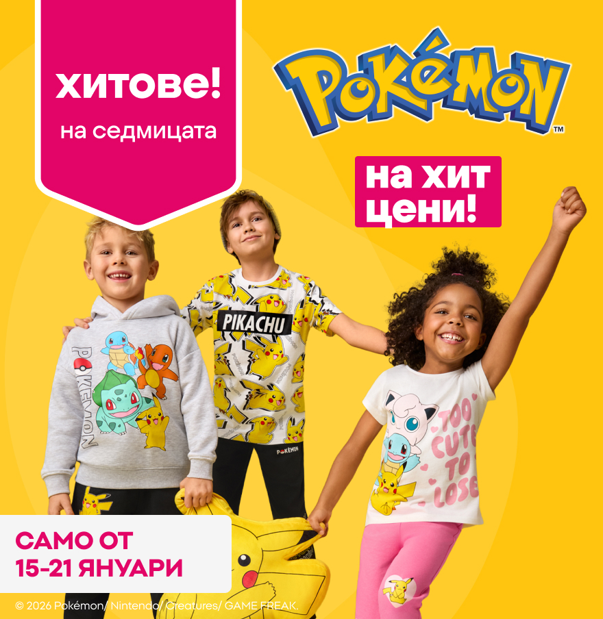 Заповядайте в Pepco и открийте най-новата колекция Pokémon! В нашите магазини ще намерите удобни дрехи и аксесоари за феновете на Pokémon от всички възрасти.