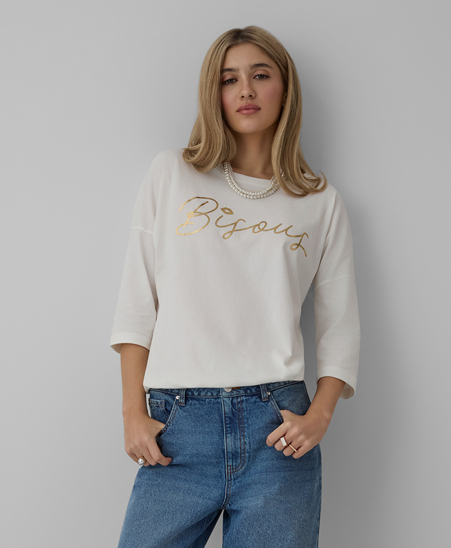 Дамска бяла тениска 100% памук