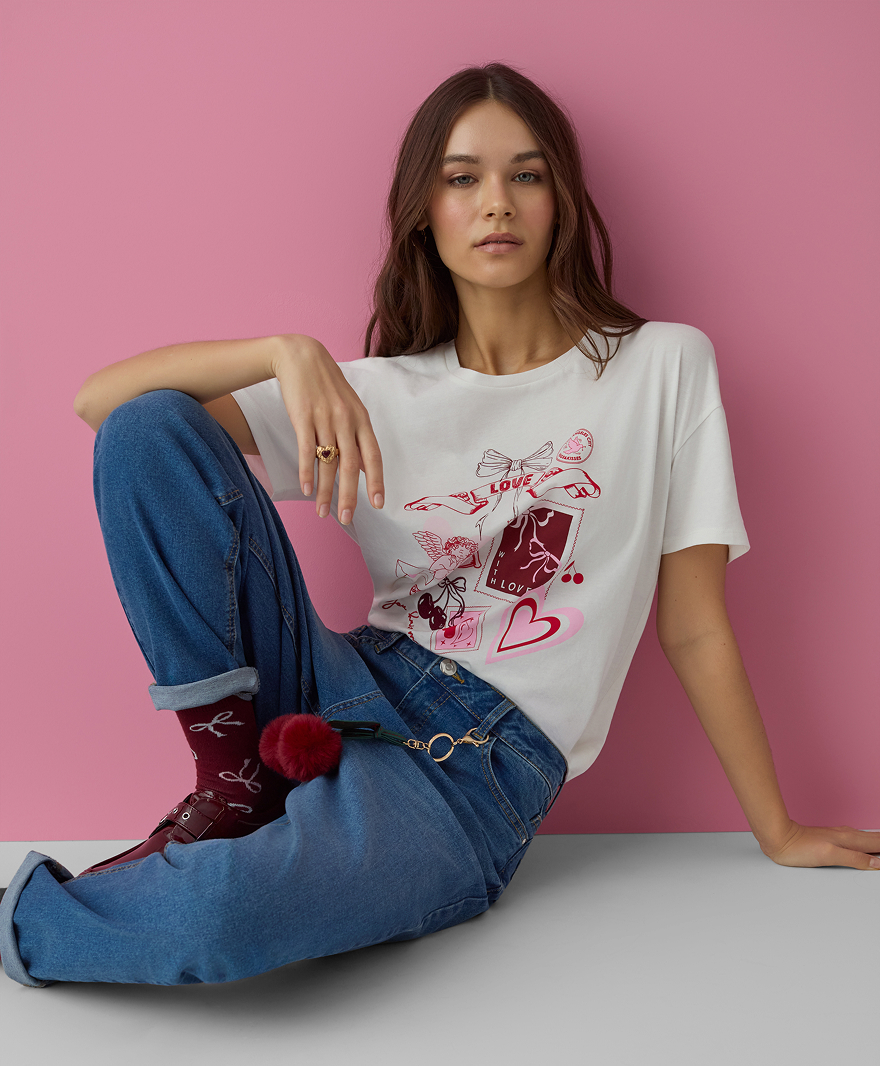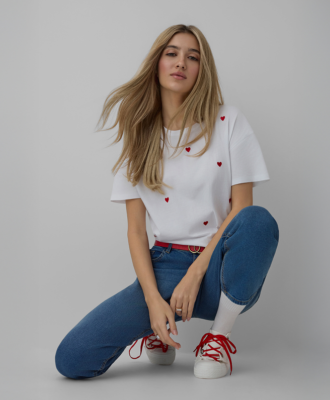 Дамска тениска със сърца, 100% памук
