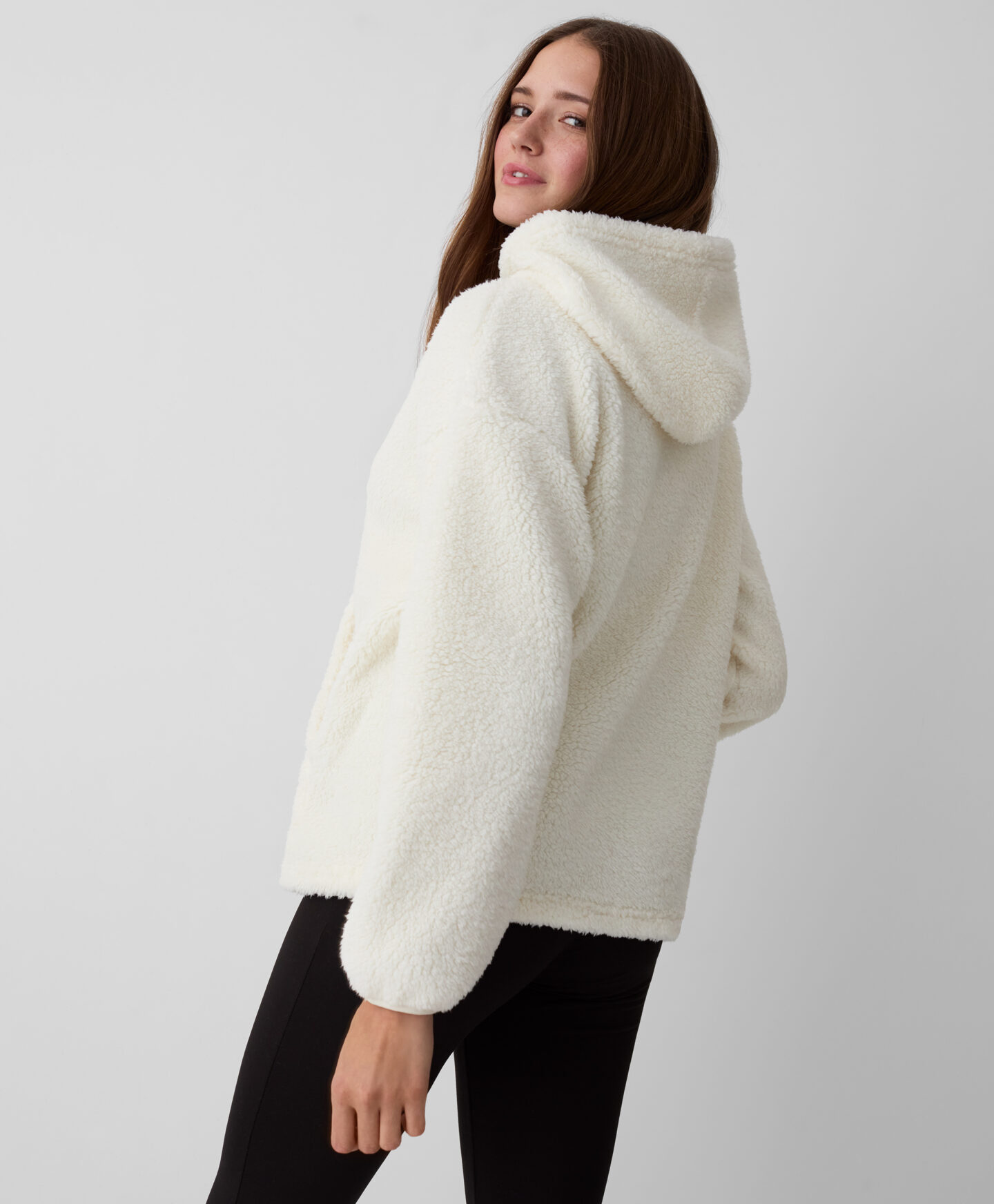 | Дамският бял суитшърт от шерпа с качулка е задължителна част от гардероба за есенно-зимния сезон. Приятната на допир материя осигурява топлина и комфорт по време на носене. Практичната качулка предпазва от вятър и студ, а джобът кенгуру затопля студените ръце. Перфектен за хладните дни.: |