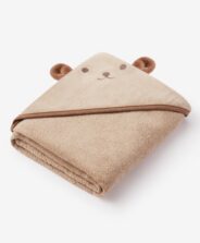 Мека памучна бебешка кърпа с качулка. Идеална за увиване на бебето след баня, предлага се в два цвята.