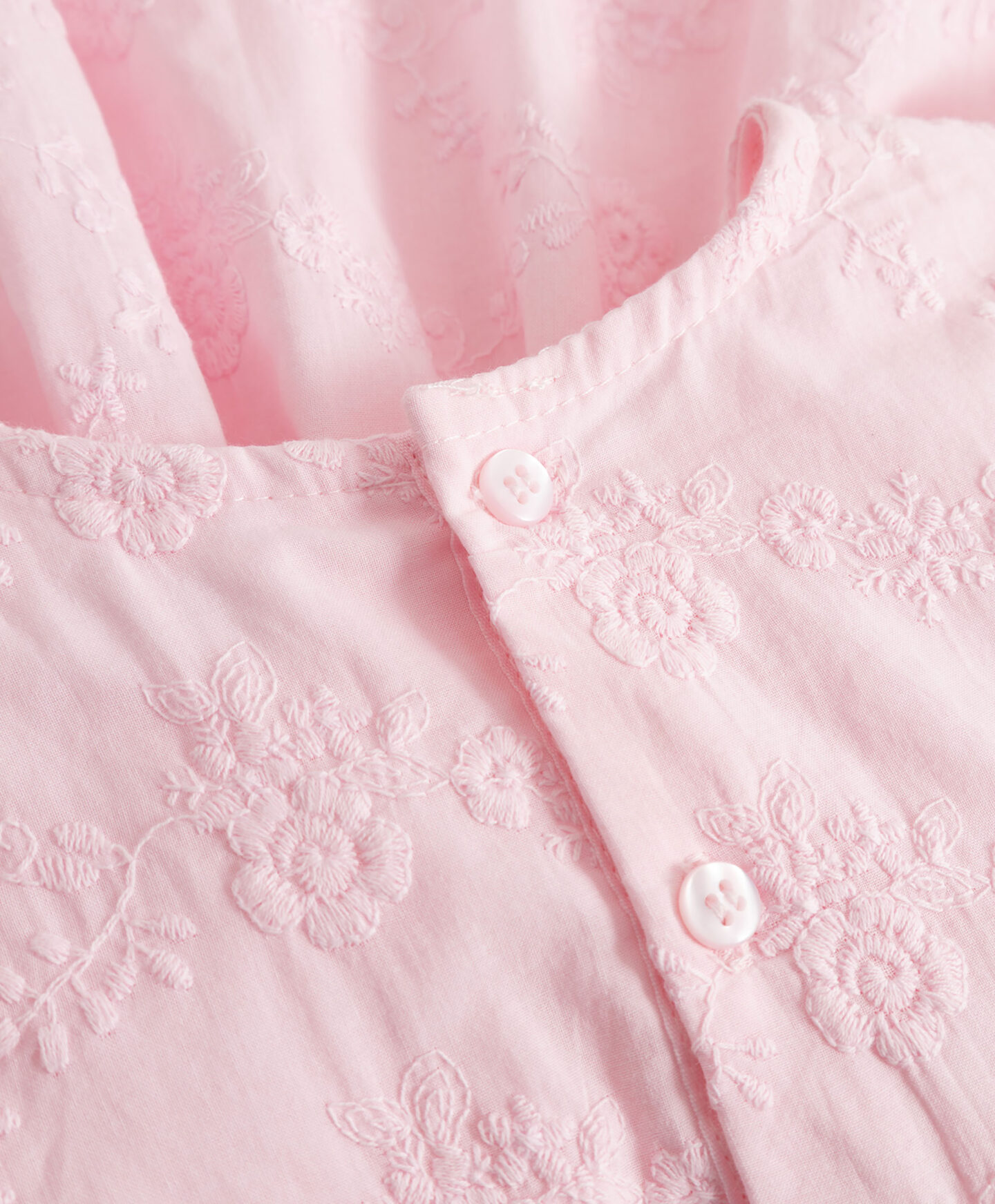 Тази бебешка рокля от поплин за момиче е елегантен избор за специални поводи. Нежната флорална бродерия и бухнатите ръкави добавят чар и грация. Външният слой от памучен поплин е изключително лек, но същевременно издръжлив и устойчив на износване. Разкроената кройка позволява пълна свобода на движение. В комбинация с жилетка, тя създава стилен ансамбъл, подходящ за всяка малка принцеса.
