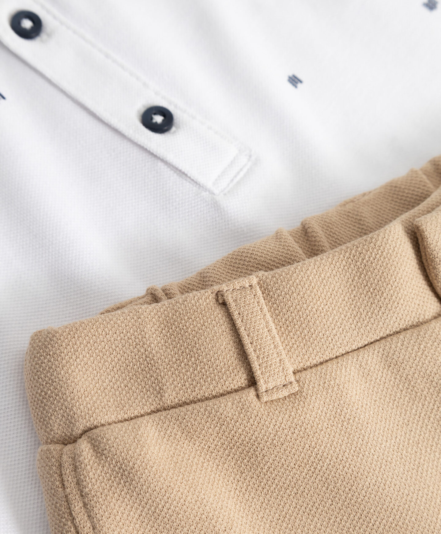 Този бебешки комплект за момче включва удобни панталони и поло тениска. Това е готов комплект за носене за твоето мъниче, който можете да допълните с жилетка от колекцията в по-хладните дни. Меките, нежни към кожата материали го правят перфектен избор от раждането. Комплектът е идеален както за ежедневно носене, така и за специални поводи. Той е и чудесен подарък за стилно мъниче.