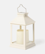 Бежовият соларен фенер съчетава магията на традиционния дизайн с модерна форма на LED осветление. Захранван от слънчева енергия благодарение на вграден соларен панел, той работи без кабели и батерии. Класическият му дизайн с метална рамка и прозрачни стъкла разпръсква светлината по топъл и уютен начин. Фенерът се включва автоматично привечер и се изключва призори, осигурявайки осветление без нужда от поддръжка през цялата нощ. Изработен от устойчиви материали, фенерът е чудесен за тераса, балкон, в градина, окачен на входа на къщата или на вътрешен двор.