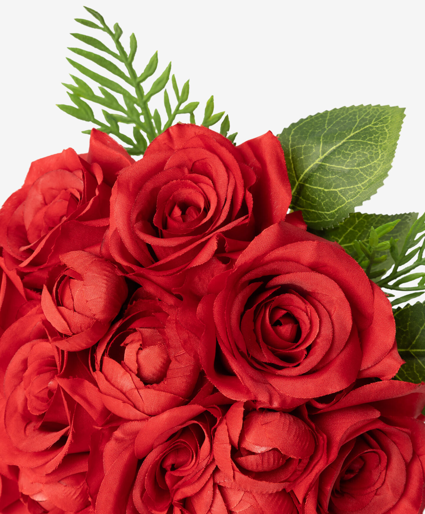 Букет за Св. Валентин, изработен от изкуствени цветя, носи радост през цялата година! Това е романтичен подарък за любим човек, който не изисква грижи или поливане. Ще изглежда красиво както самостоятелно, така и като част от по-голяма аранжировка за Свети Валентин.