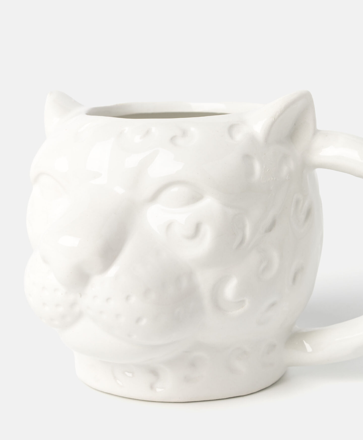 Чашата с бяла пантера е оригинален кухненски аксесоар за любителите на животинските мотиви и нестандартния дизайн.