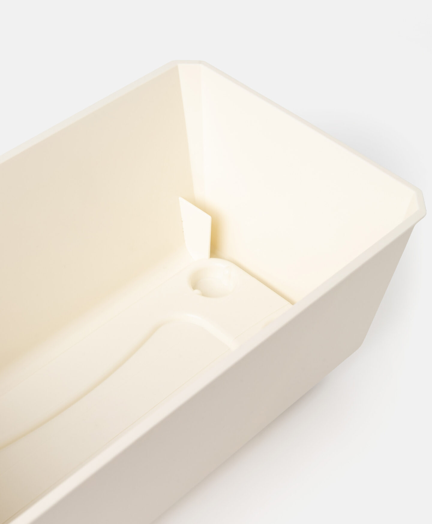 Бялата саксия Saga съчетава минималистичен дизайн с изключителна функционалност. Дълбочината и ширината ѝ осигуряват на растенията пространството, от което се нуждаят за здравословен растеж.