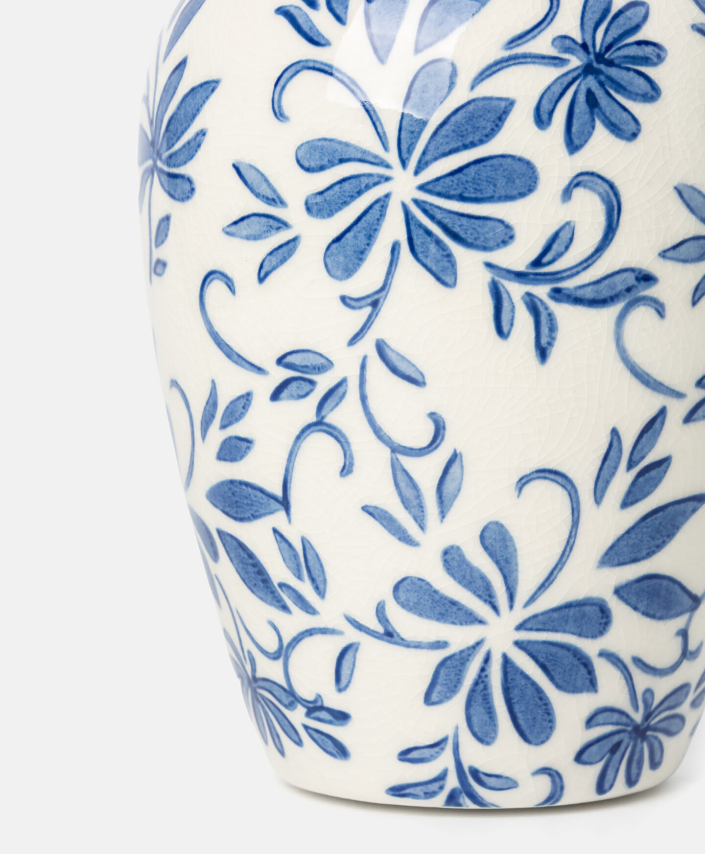 Тази ваза от керамика с шарка е идеална за излагане както на пресни цветя, така и на изкуствени клонки. Тя изглежда красива самостоятелно или като част от декоративна аранжировка. Вазата е издръжлива, лесна за почистване и украсена с красив флорален мотив.