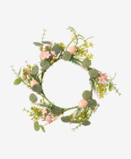 Този великденски венец с розови цветя е перфектен като декорация за врата, красиво допълнение към хол или офис, или като декоративен елемент за великденски партита и тържества. Можете да го използвате и за създаване на пролетна аранжировка с ароматни свещи и дизайнерска ваза. Предлагаме разнообразие от дизайни, от които да избирате.