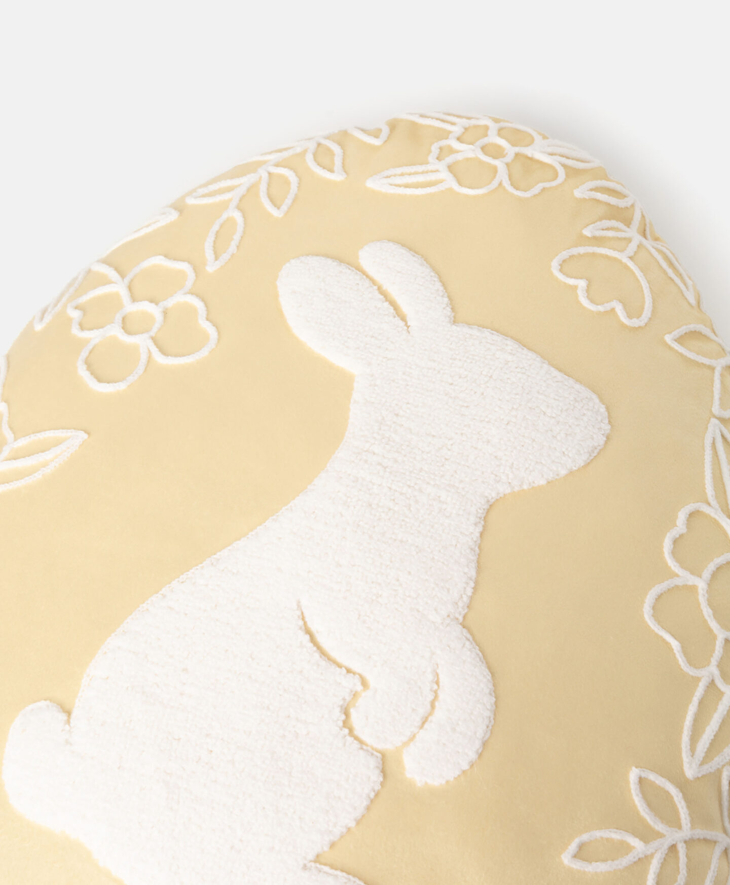 Възглавницата с форма на яйце внася празнична атмосфера в дома ви. Тя е мека, приятна на допир и е украсена с пухкаво бродирано великденско зайче. Идеална е за декорация на диван, фотьойл или легло и е подходяща за хол, спалня или детска стая.