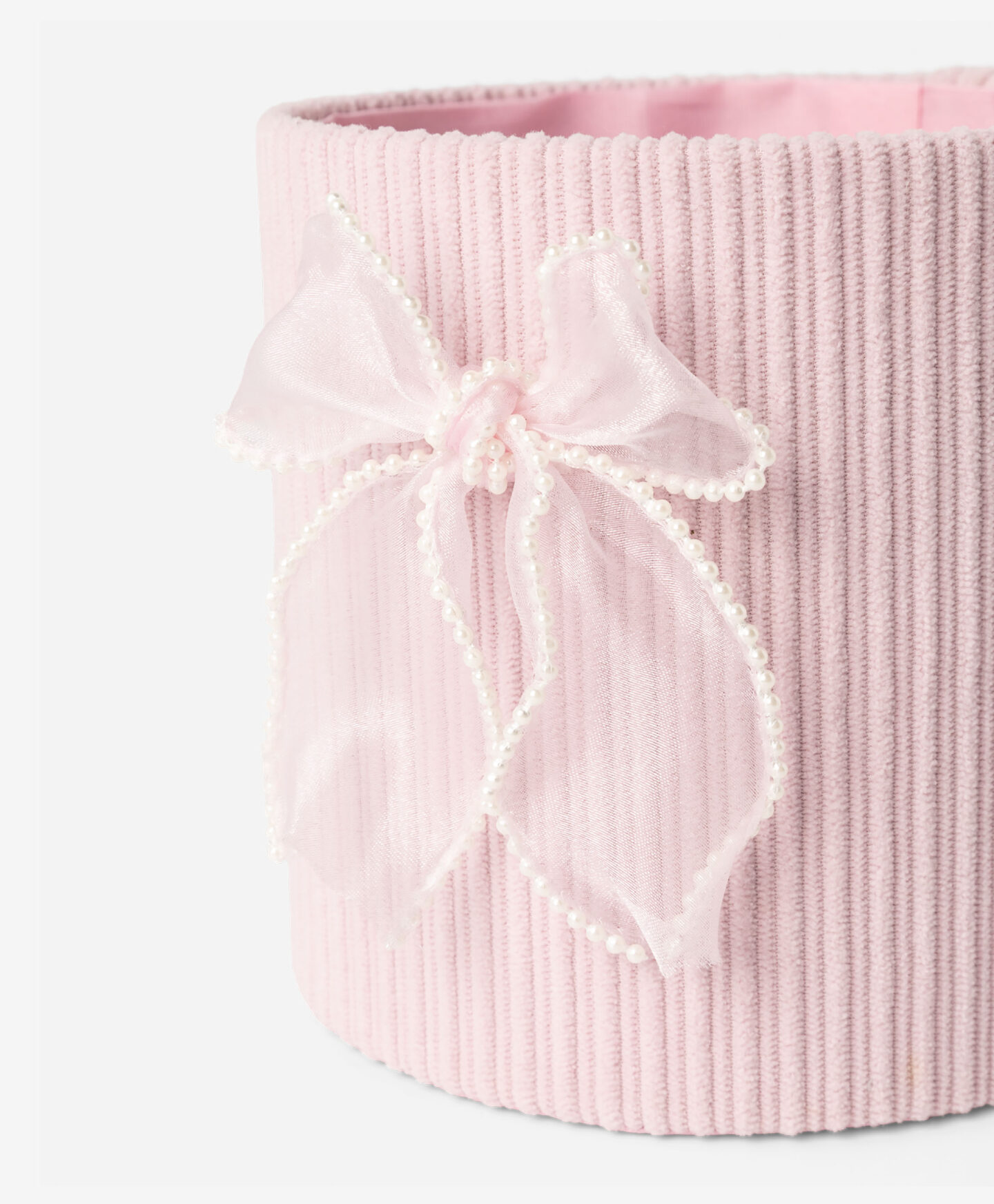 Голямата кръгла кутия с панделка е елегантен и практичен декоративен елемент, подходящ за всеки интериор. Идеална е за съхранение на предмети като козметика или малки аксесоари. Декоративната панделка добавя чар, което я прави стилно допълнение към рафт, скрин или бюро. Липсата на капак позволява лесен достъп до съдържанието, което е много удобно за ежедневна употреба.: