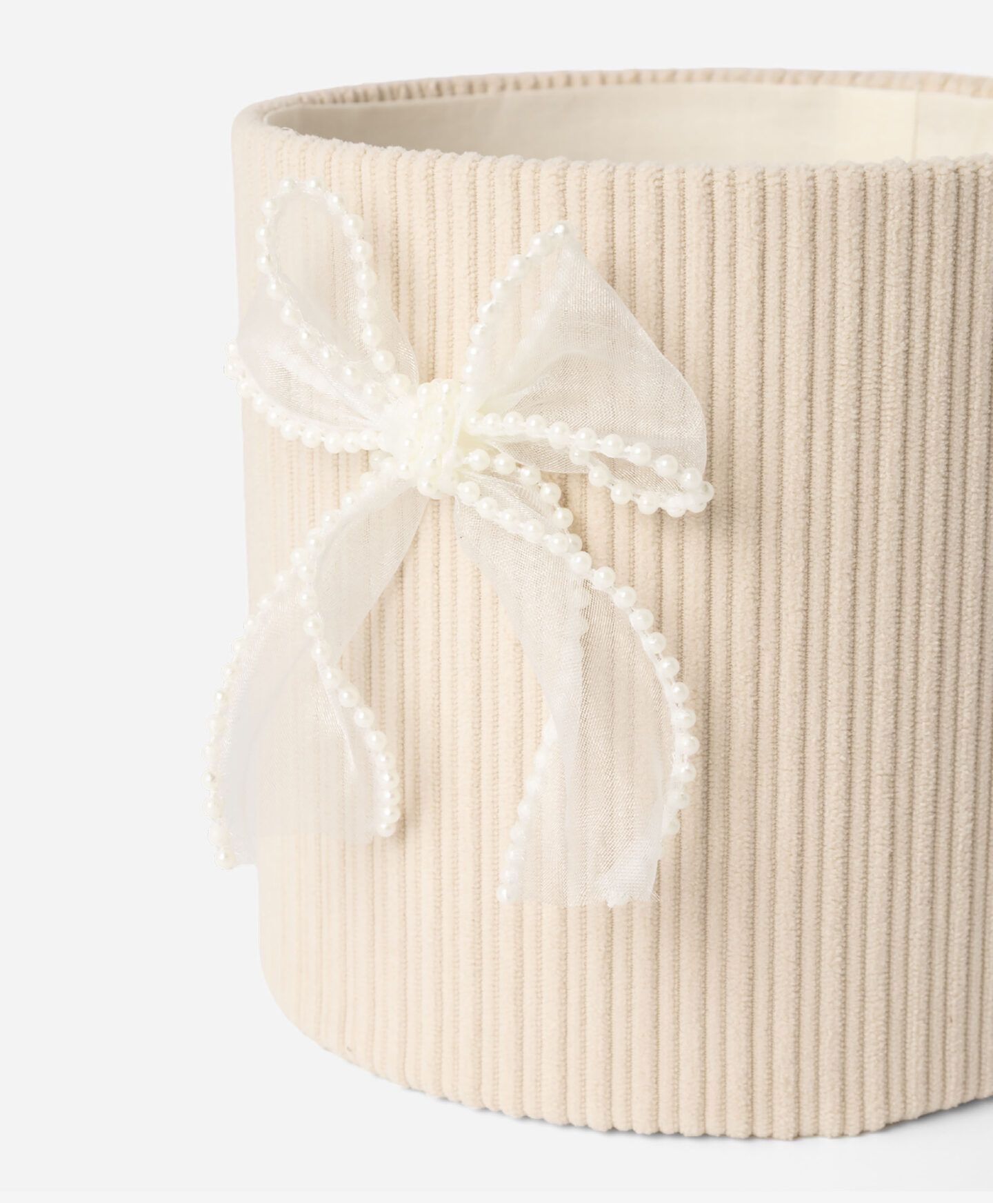 Голямата кръгла кутия с панделка е елегантен и практичен декоративен елемент, подходящ за всеки интериор. Идеална е за съхранение на предмети като козметика или малки аксесоари. Декоративната панделка добавя чар, което я прави стилно допълнение към рафт, скрин или бюро. Липсата на капак позволява лесен достъп до съдържанието, което е много удобно за ежедневна употреба.