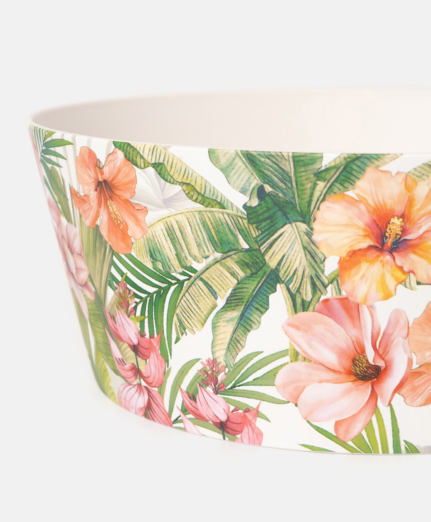 Тази голяма купа за салата с живописен мотив на хибискус е хит това лято! Големият ѝ капацитет я прави незаменима за семейни вечери или градински барбекюта: тя може да побере щедра порция пресни салати и закуски. Мотивът на хибискус прави ястията да изглеждат невероятно апетитни. Това е цветен акцент, който ще оживи всяка маса и ще добави екзотичен щрих.