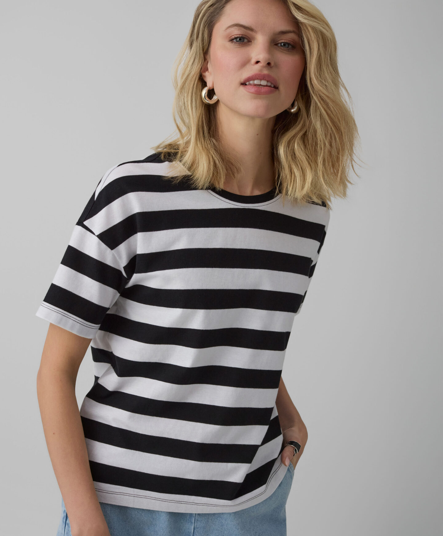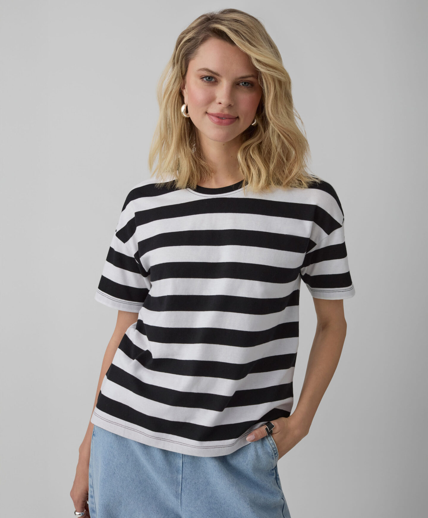 | Дамска раирана тениска от 100% памук ще добави характер към всяко облекло. Убеди се сама в Pepco!: |