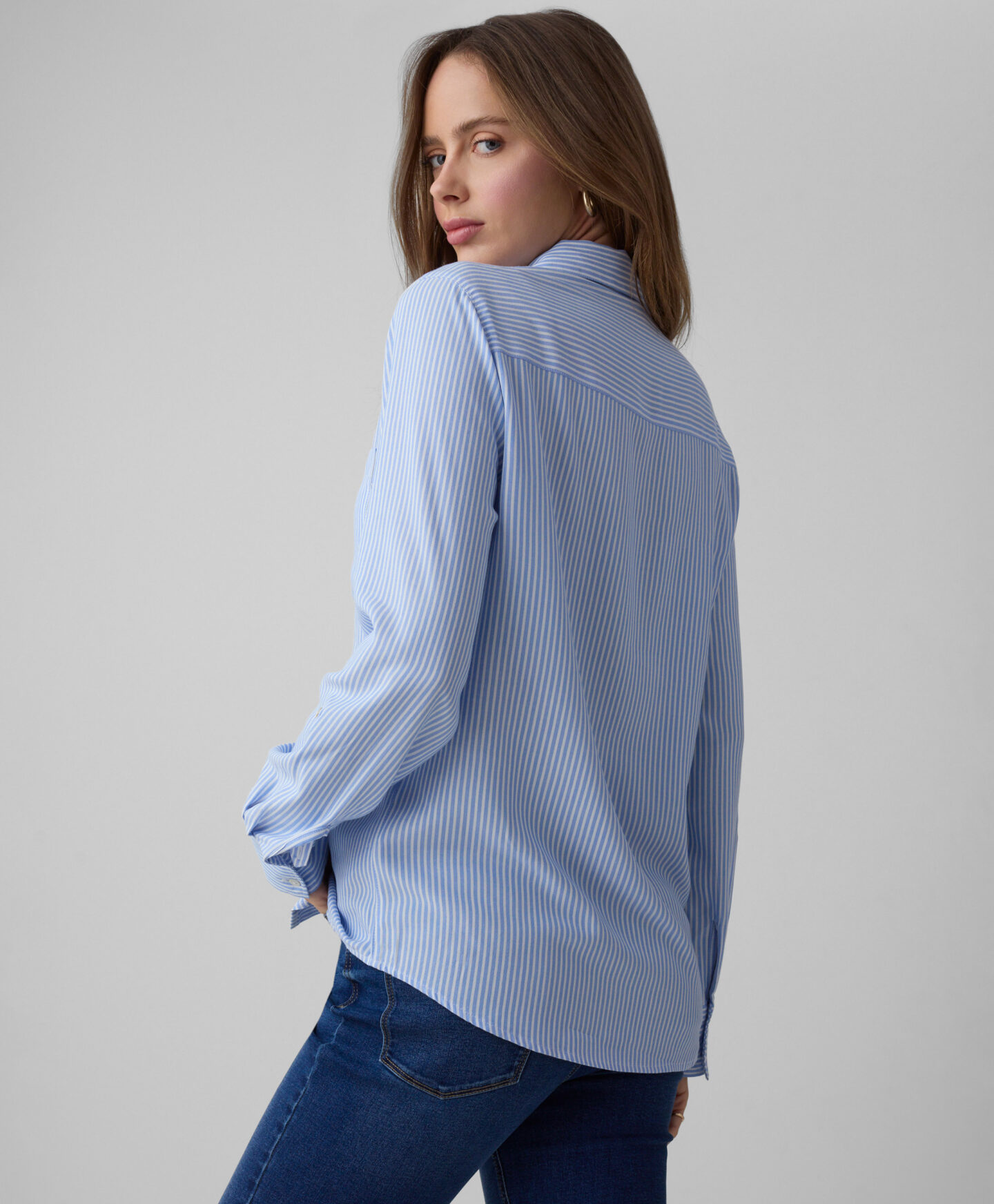 Дамската раирана риза, изработена от 100% вискоза, с джоб, ще допълни перфектно гардероба ви. Универсалният модел ще изглежда страхотно в комбинация както с елегантни панталони, така и със свободни дънки. Вискозата, известна със своята мекота, лекота и дишане, ще ви осигури комфорт при носене, като перфектно се адаптира към вашия силует.