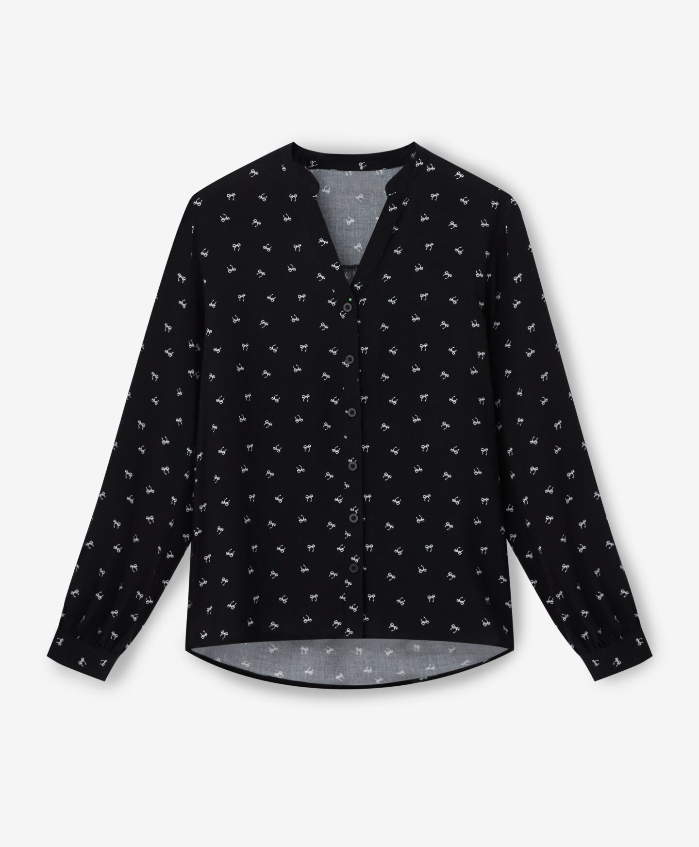 Дамска риза, изработена от 100% вискоза, с дълги ръкави, е декорирана с фин мотив на панделка. Тя е лека, ефирна и романтична. Идеална не само за ежедневно носене, но и за специални поводи. Дишащата вискоза я прави идеален избор под сако, пуловер или жилетка.