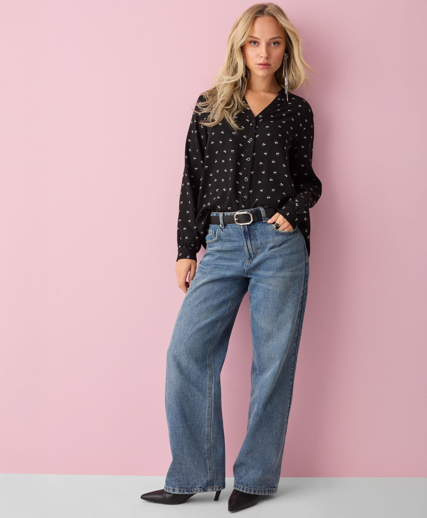 | Дамска риза, изработена от 100% вискоза, с дълги ръкави, е декорирана с фин мотив на панделка. Вижте я в Pepco!: |
