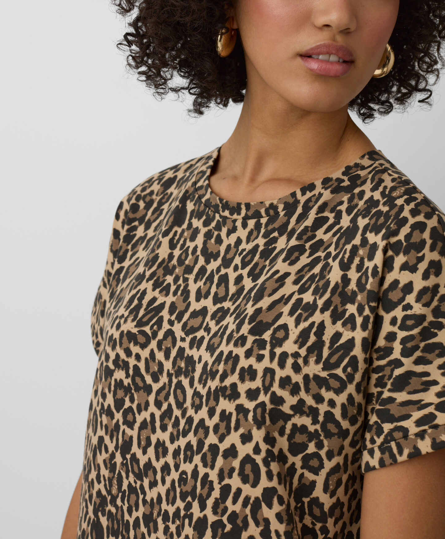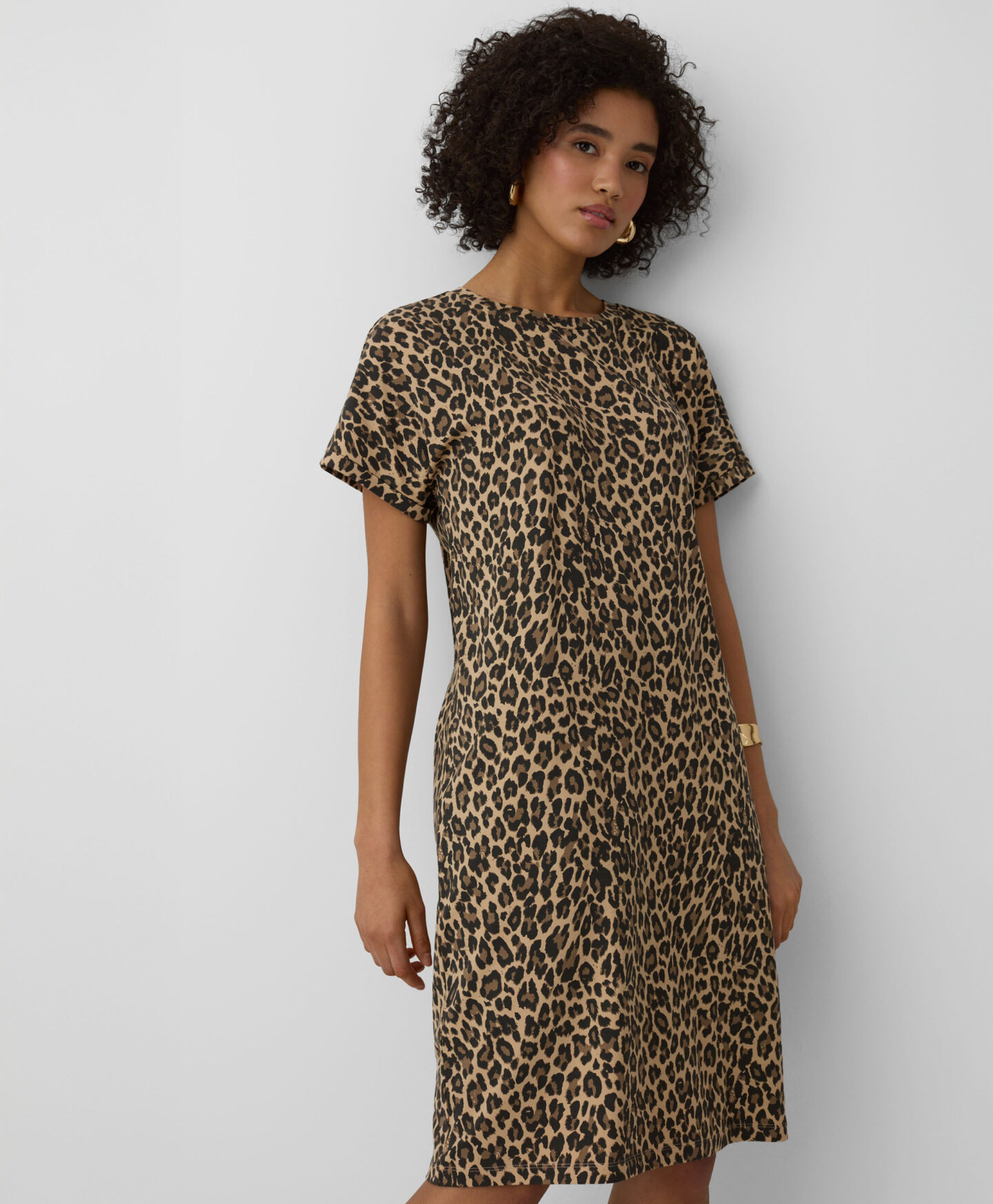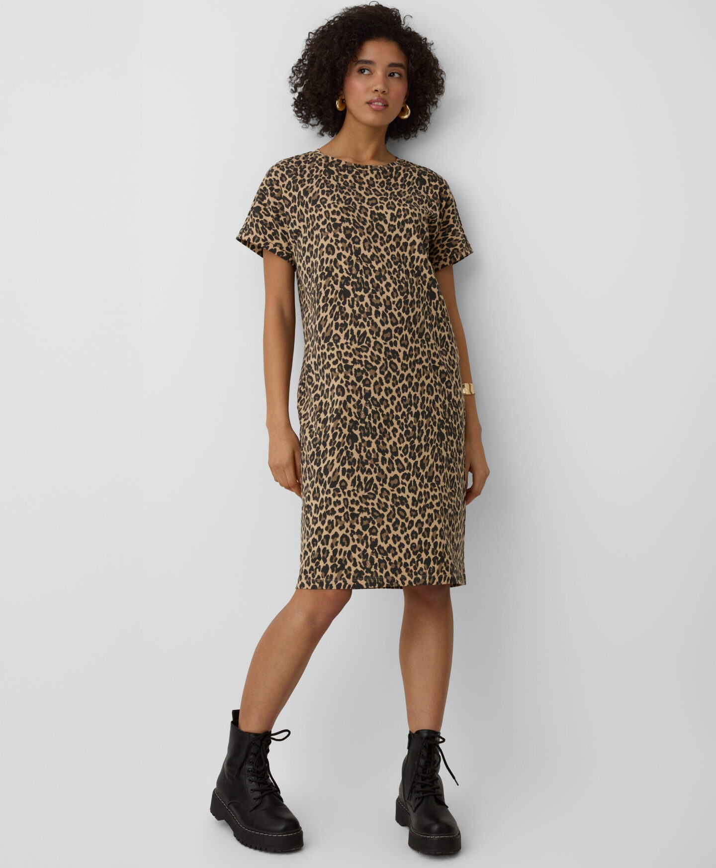 Дамска рокля с леопардов принт ще те накара да се откроиш от тълпата. Животинският принт е не само модерен, но и привличащ вниманието и ти позволява да изразиш индивидуалния си стил. Дишащият памук с нотка еластан се спуска красиво, предлагайки несравним комфорт. Тази рокля е идеална както за ежедневно носене, така и за специални поводи.