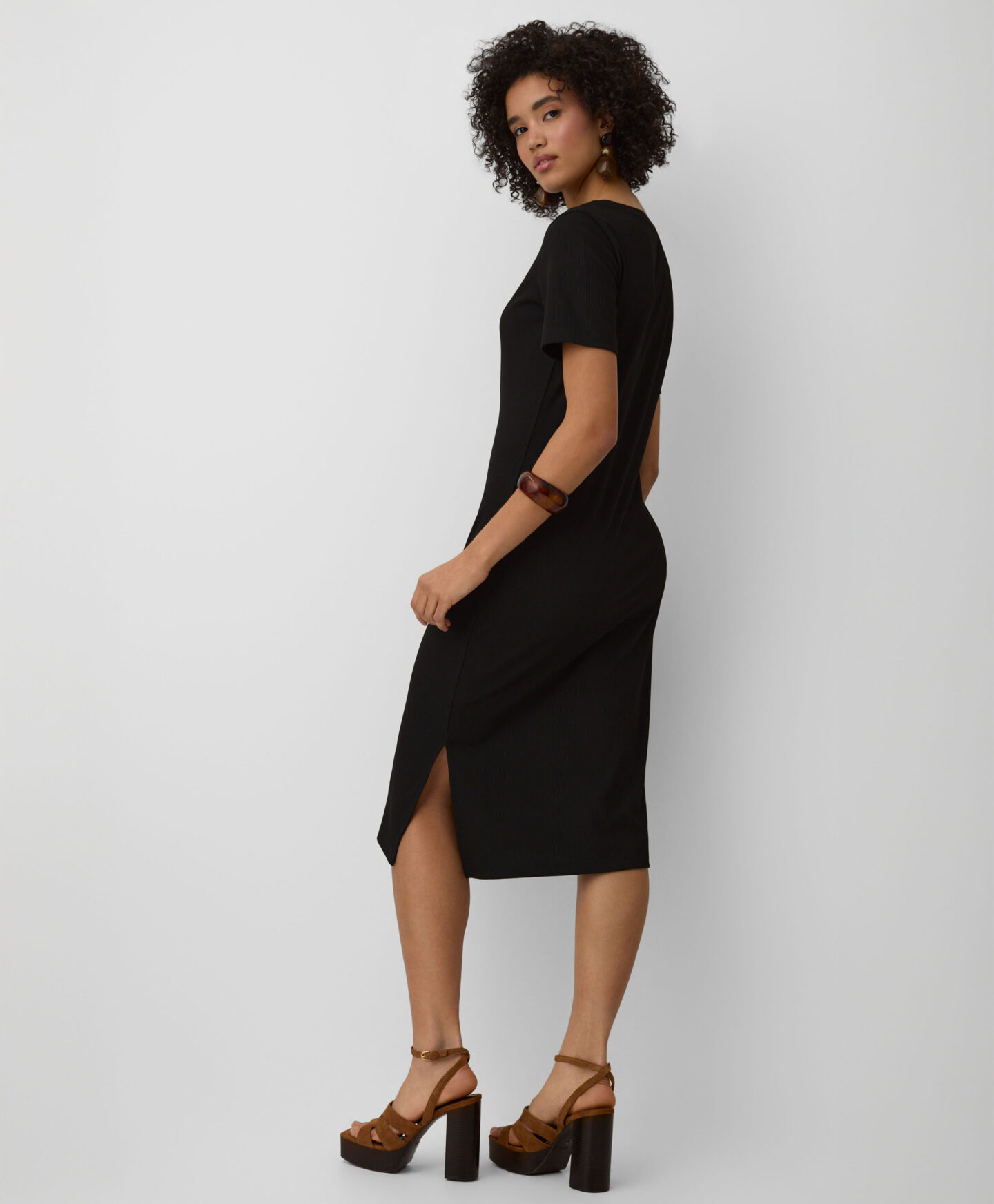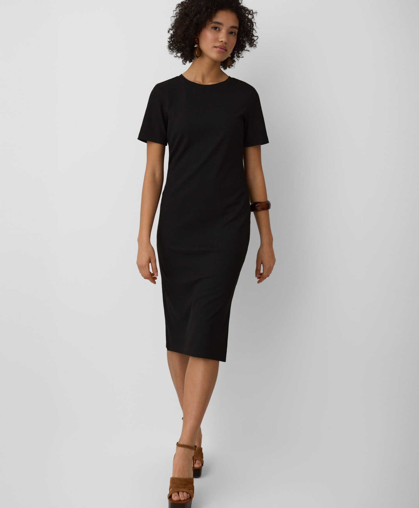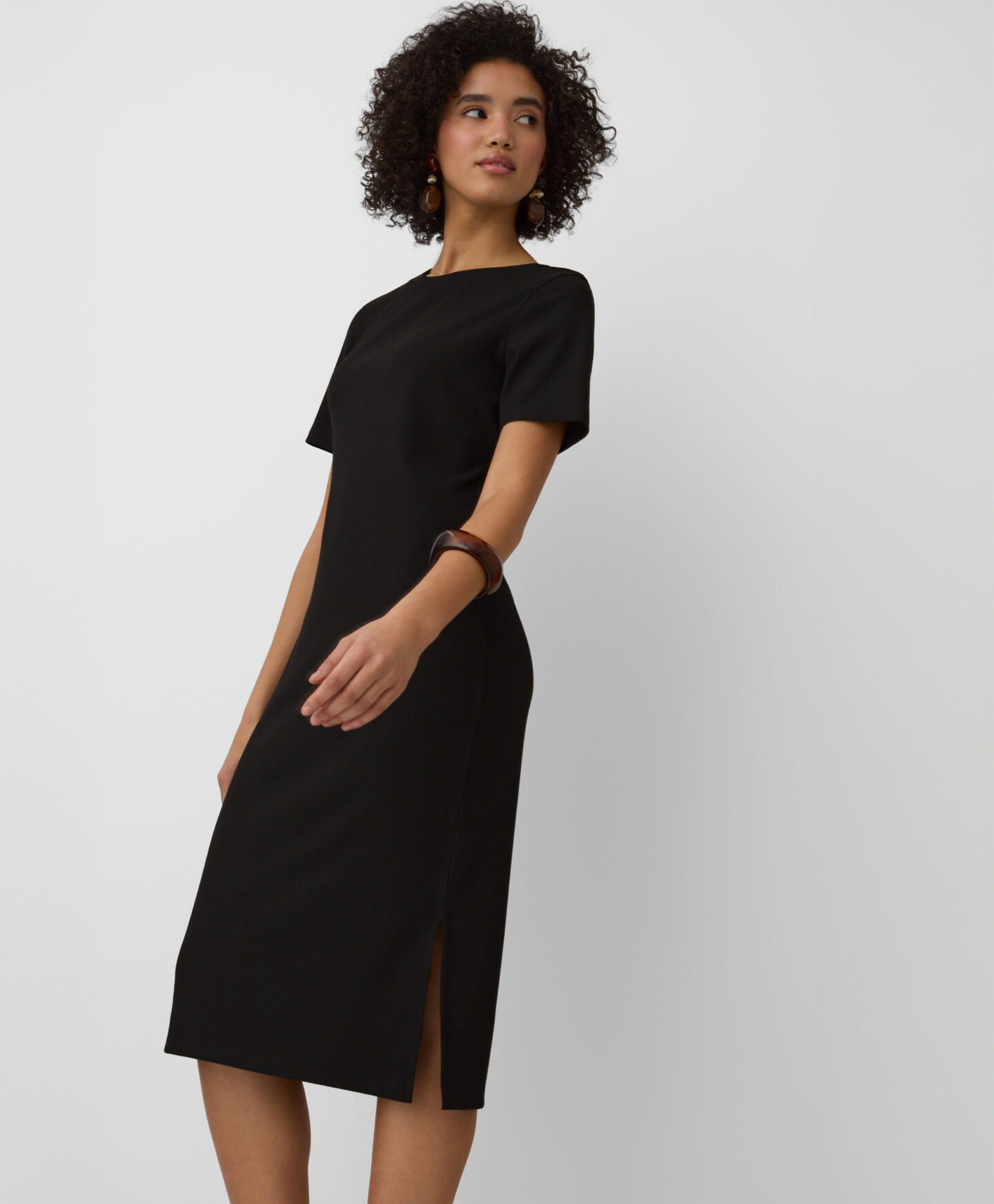 Тази дамска рокля на тънки райета е невероятно универсална. Вечният черен цвят визуално изтънява силуета, а класическата кройка осигурява ласкателно прилягане. Мекият материал предлага несравним комфорт. Роклята е идеална както за ежедневно носене, така и за специални поводи.