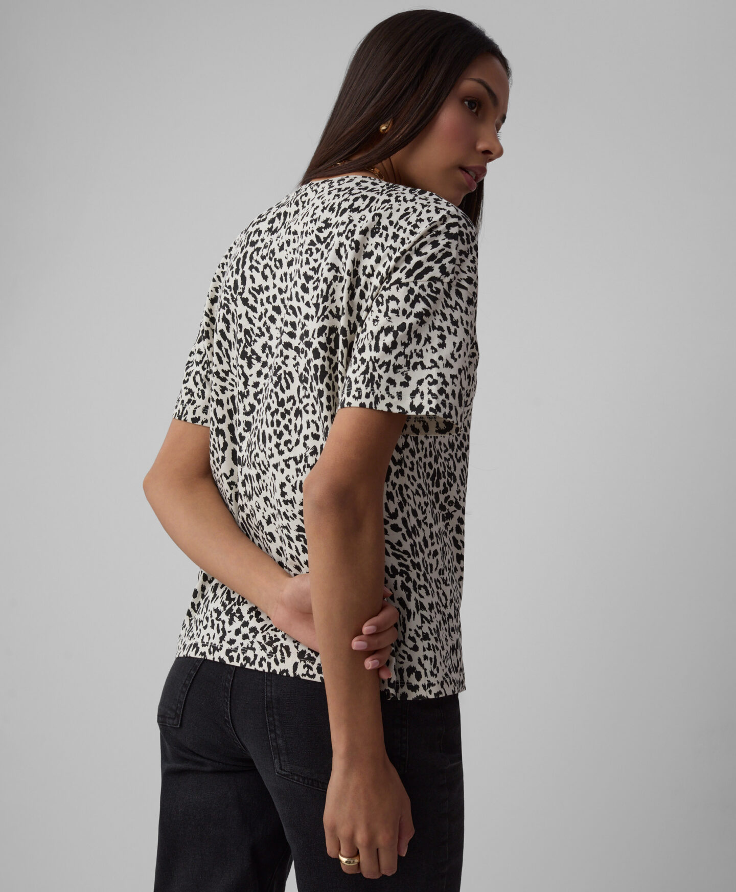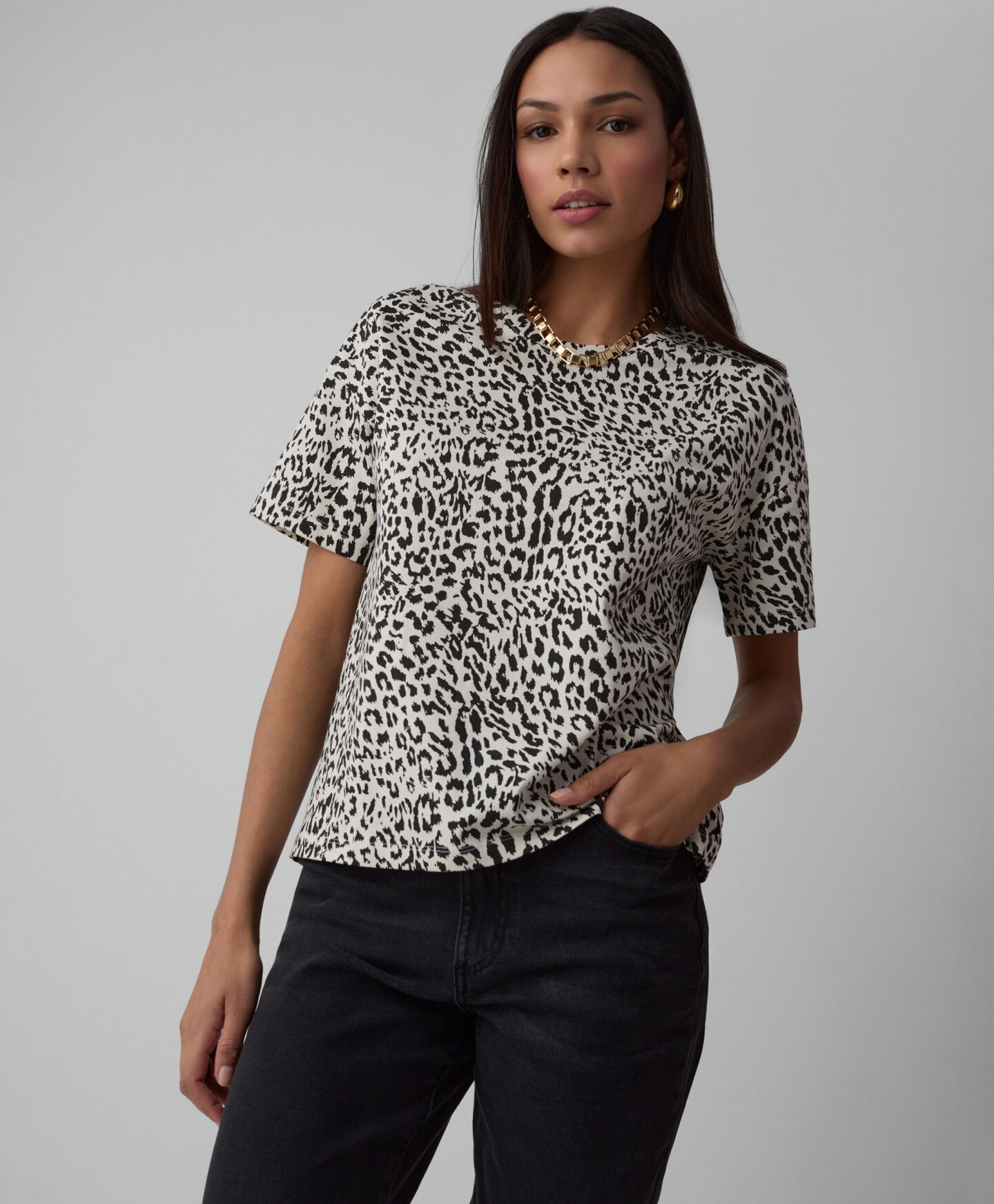 Дамска тениска, изработена от 100% памук, с шарка на точки, е мека, дишаща и нежна към кожата. Естественият материал осигурява комфорт през целия ден и е идеален за носене през цялата година. Идеална за носене под жилетка, сако или суитшърт през по-хладните периоди.