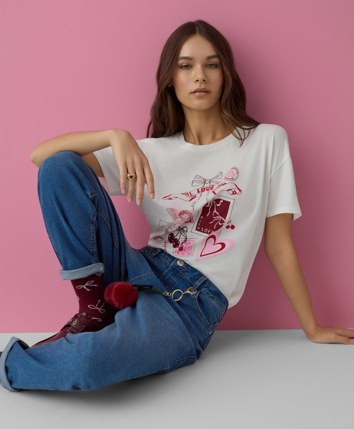 | Дамската тениска за Свети Валентин, изработена от 100% памук с къс ръкав, е чудесен избор за ежедневно носене. Да, само в Pepco!: |