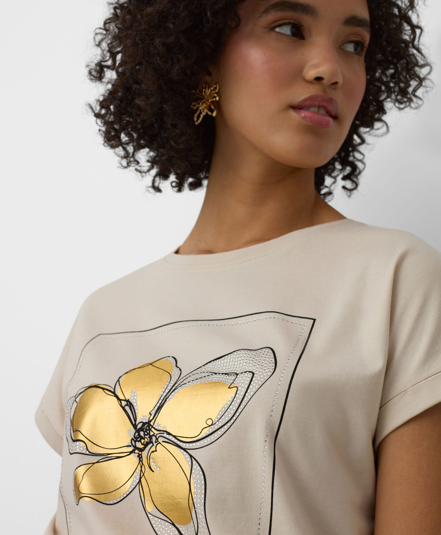 Тази дамска тениска от 100% памук е с невероятна кристална апликация. Тя е удобна, ефирна и позволява на кожата да диша. Идеална е за съчетаване с любимите ти дънки, спортни панталони или елегантни панталони.