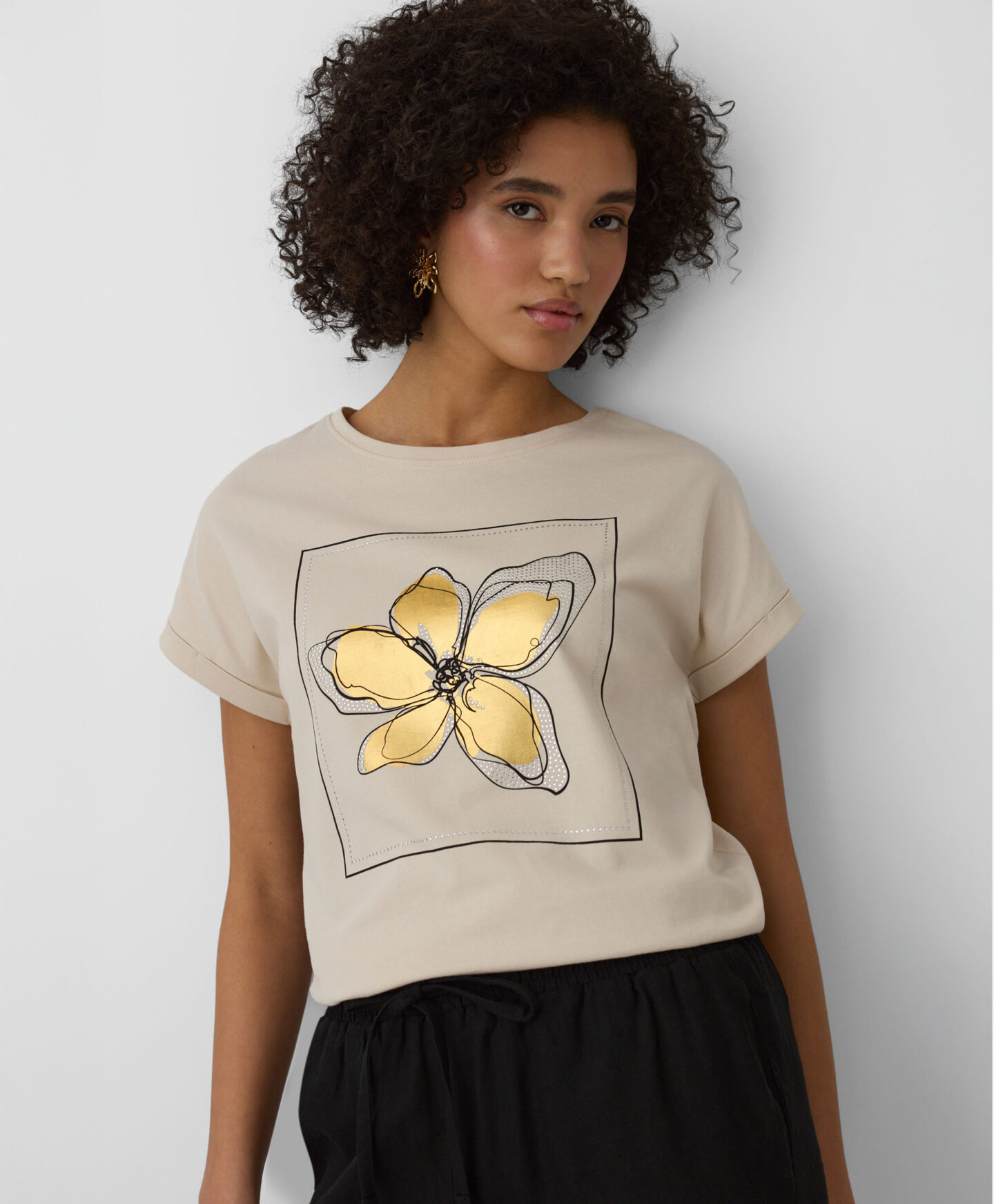 | Тази дамска тениска от 100% памук е с разкошна апликация от кристали. Само в любимия ти магазин Pepco!: |