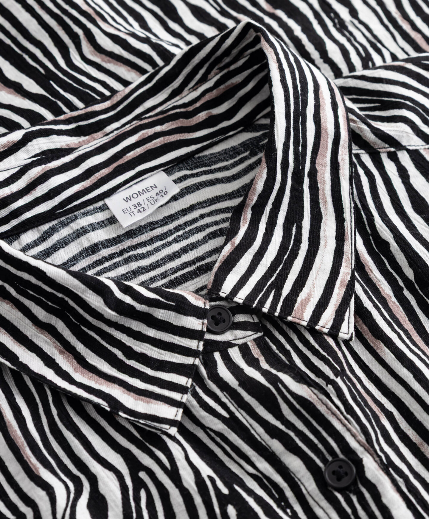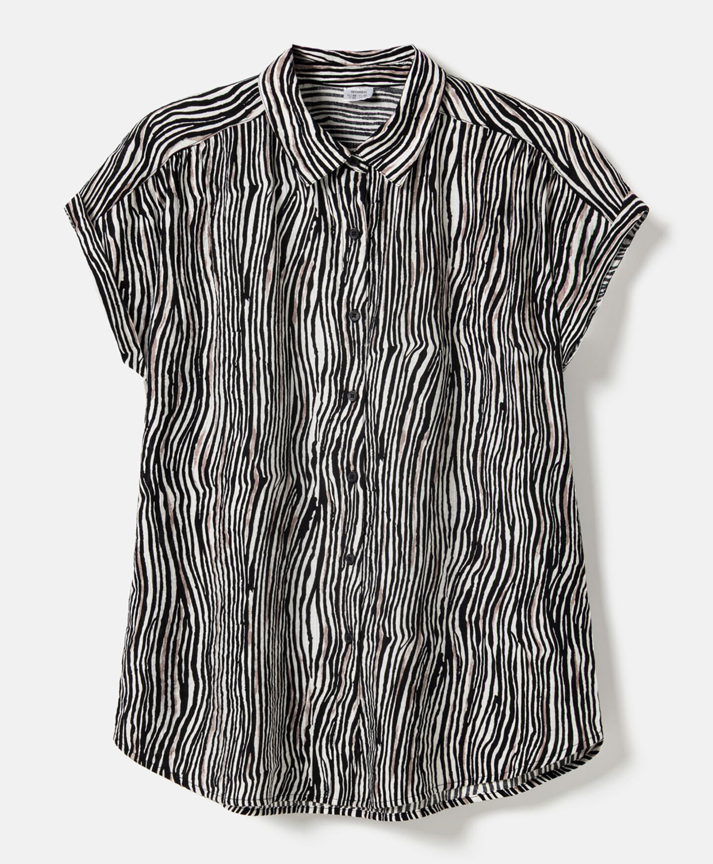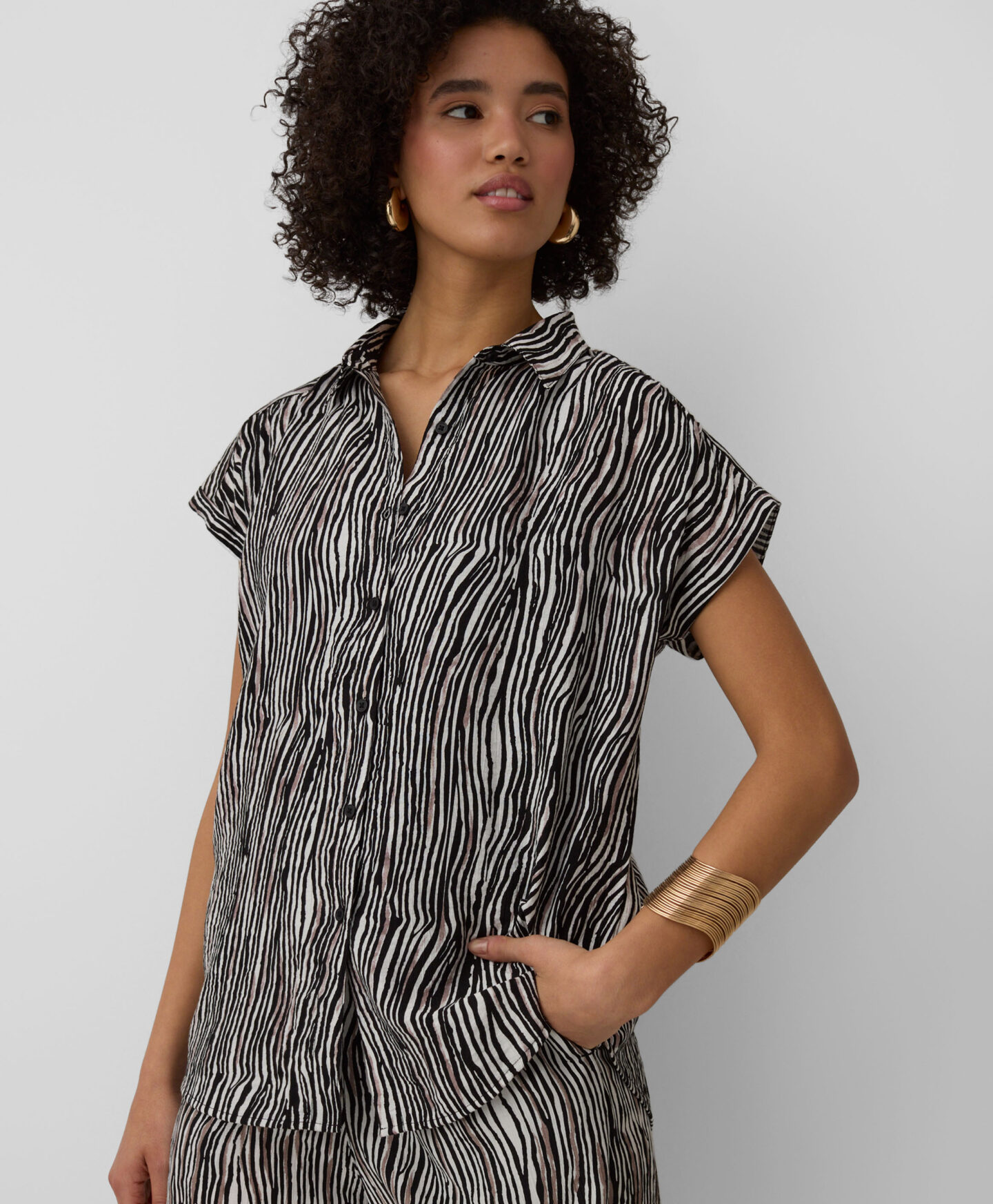 Тази дамска риза от 100% вискоза е с къси ръкави, идеална за топлите дни. Тя е ефирна, лека и дишаща. Мекият материал те обгръща удобно, осигурявайки комфорт през целия ден. Тази риза ще изглежда страхотно с къси панталони, любимите ти дънки или по-елегантни панталони.