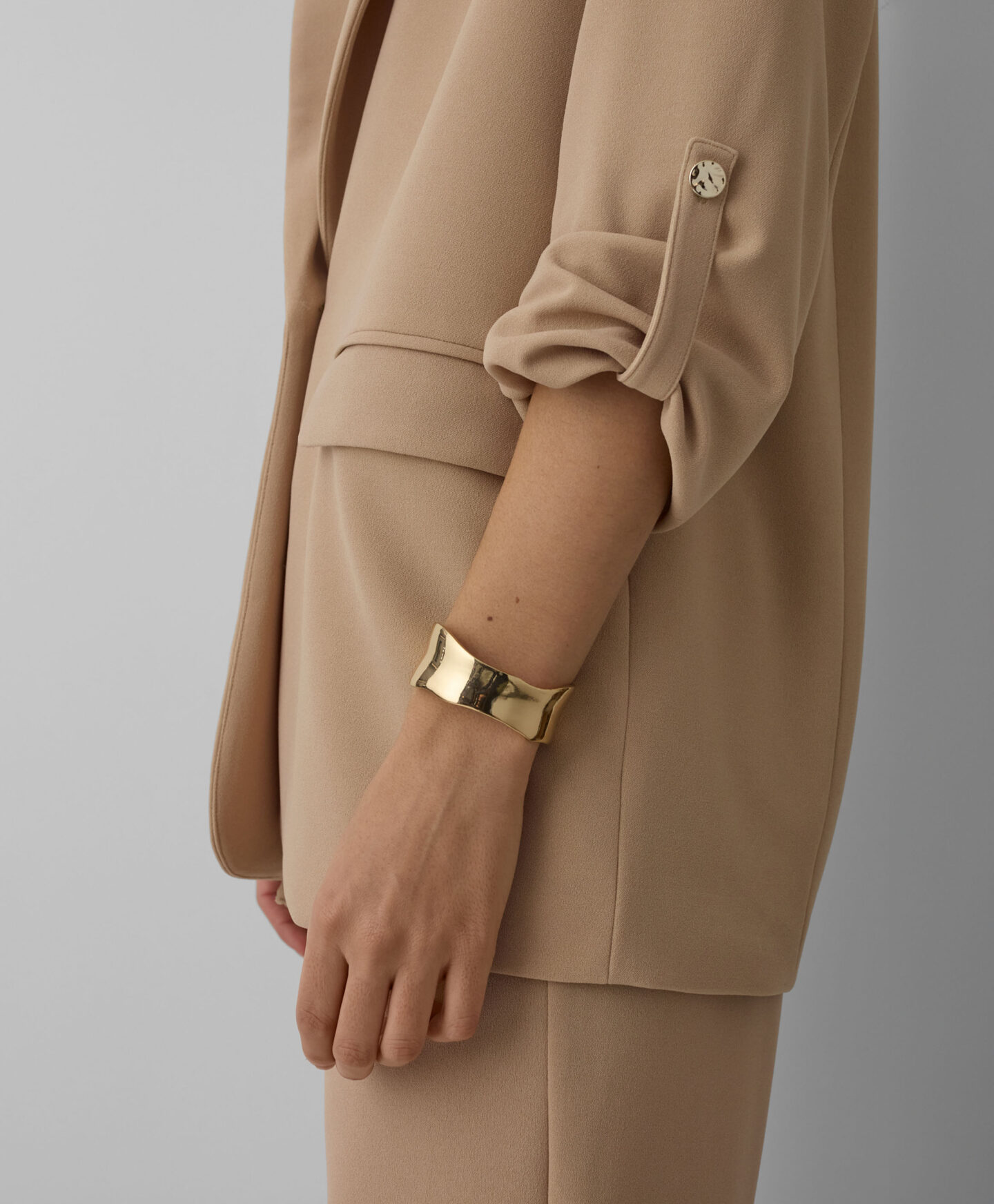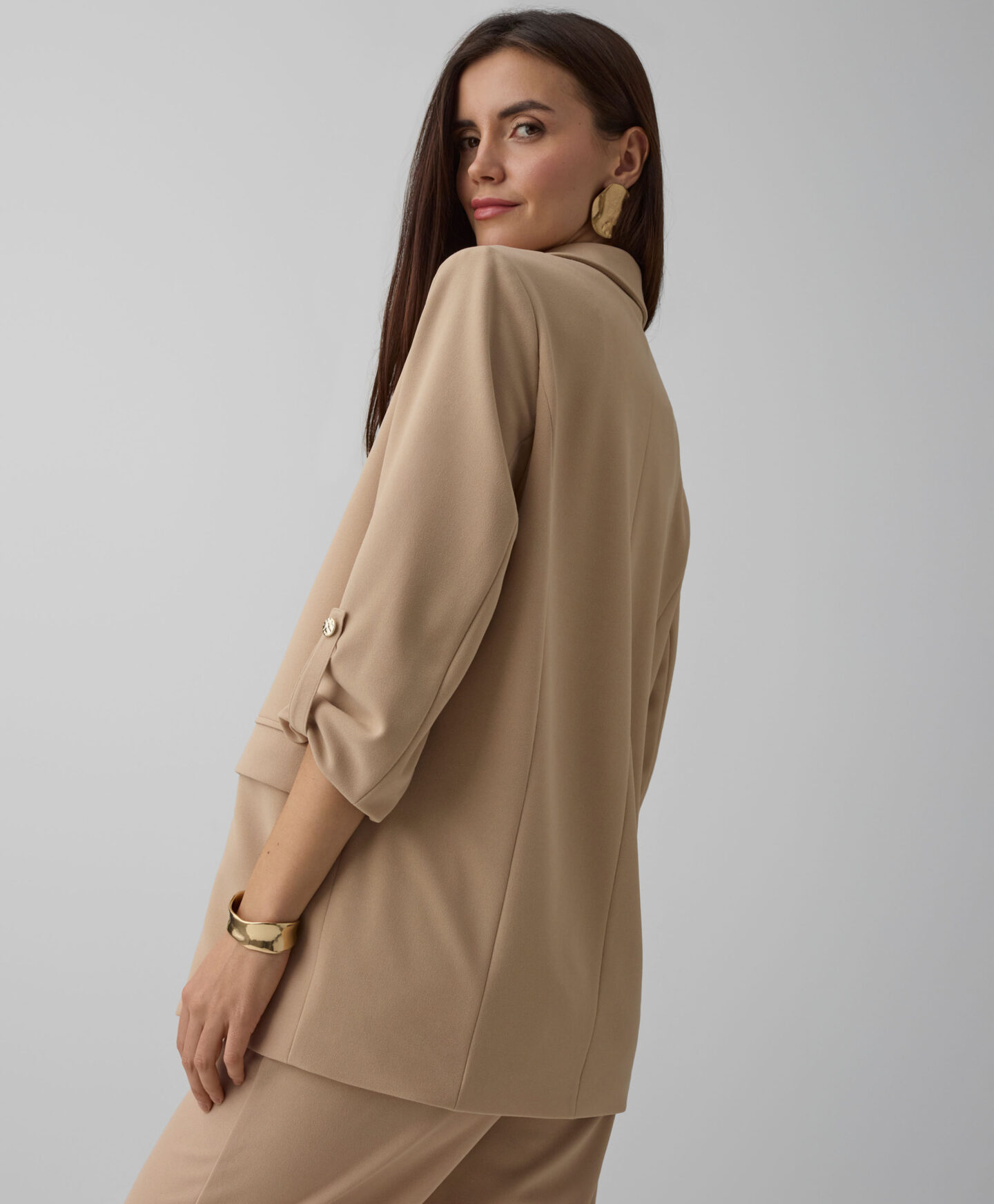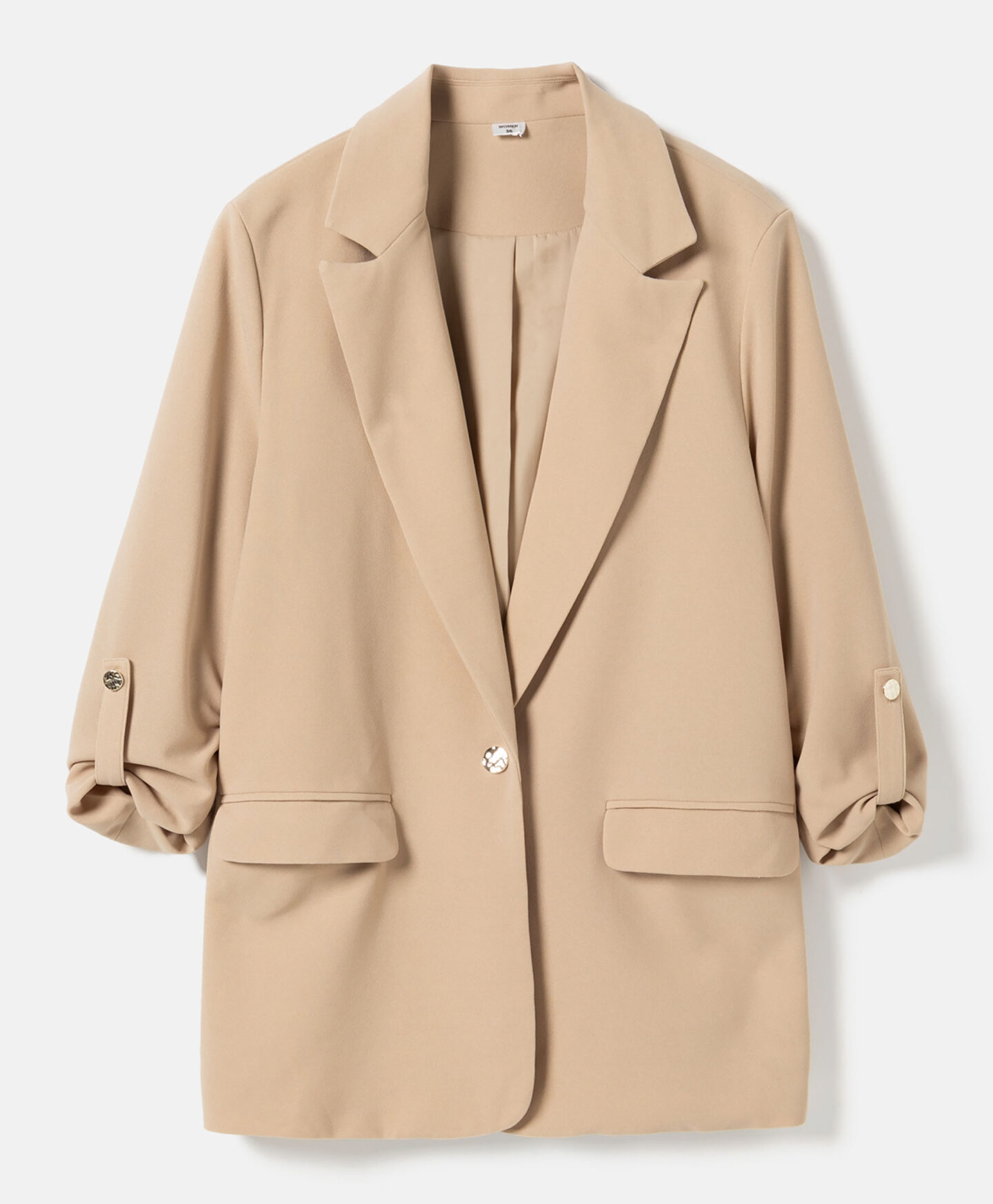 Дамският блейзър се съчетава перфектно с панталони от колекцията. Това е класическа дреха, която е задължителна в гардероба ти. Може да го носиш върху елегантна рокля или ежедневна тениска. Идеално за офиса, официални срещи или семейни събирания. Бежовият цвят допълва много тоалети, като винаги ти предлага стилистична свобода.
