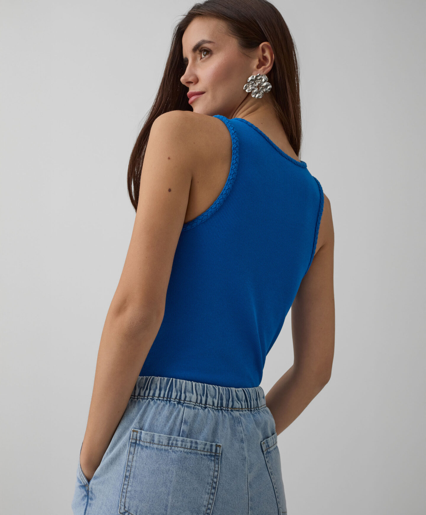 Дамският бял топ е основата на много стилни тоалети. Универсалният дизайн, който никога не излиза от мода, се съчетава прекрасно с много дрехи от гардероба – от панталони до поли. Меката, дишаща материя осигурява несравним комфорт през целия ден, независимо от сезона. В колекцията се предлагат два цветови варианта.