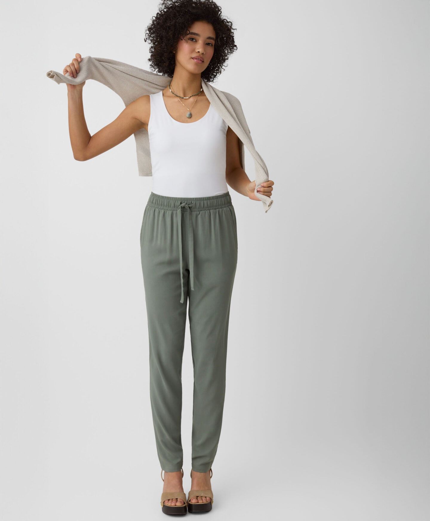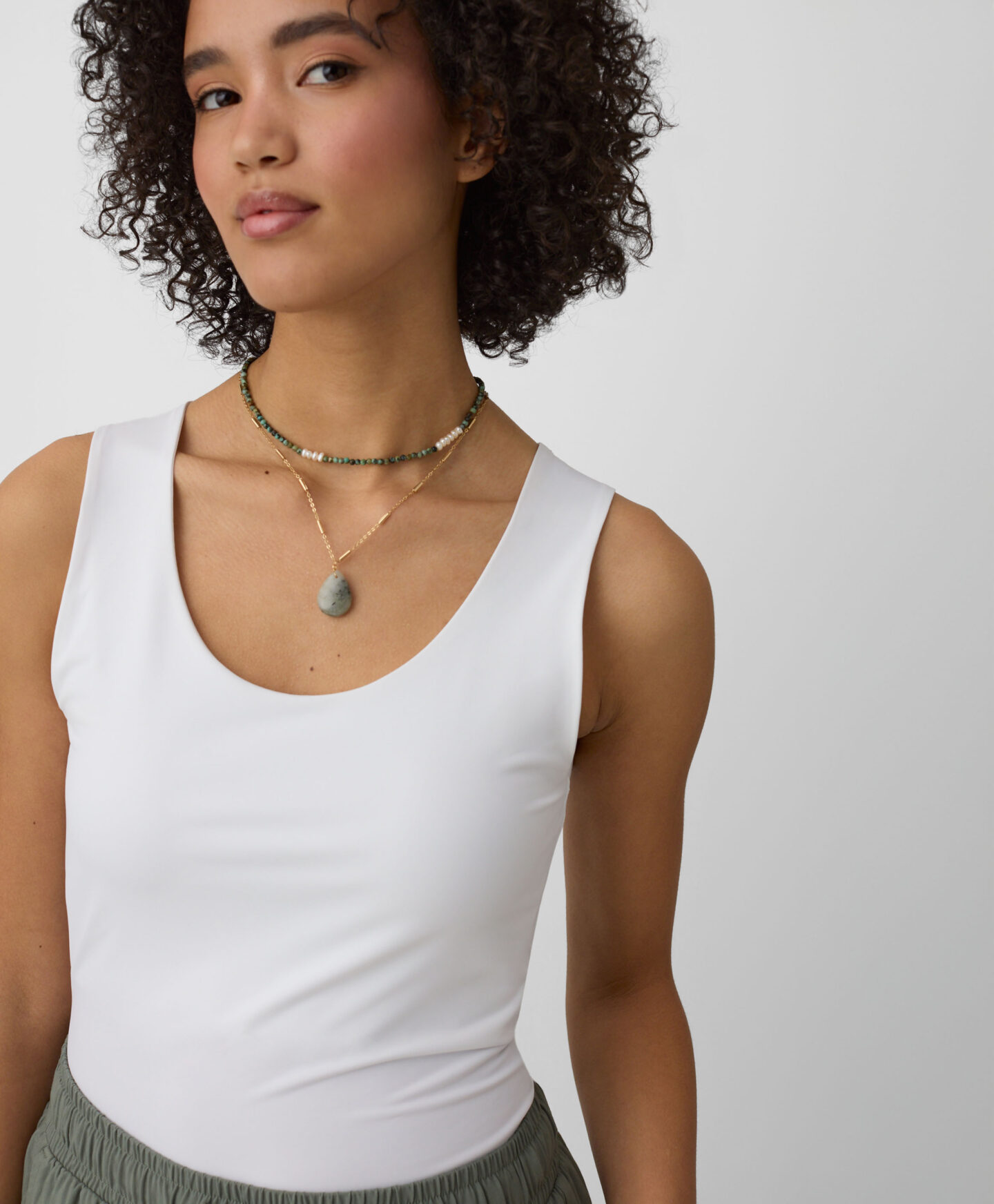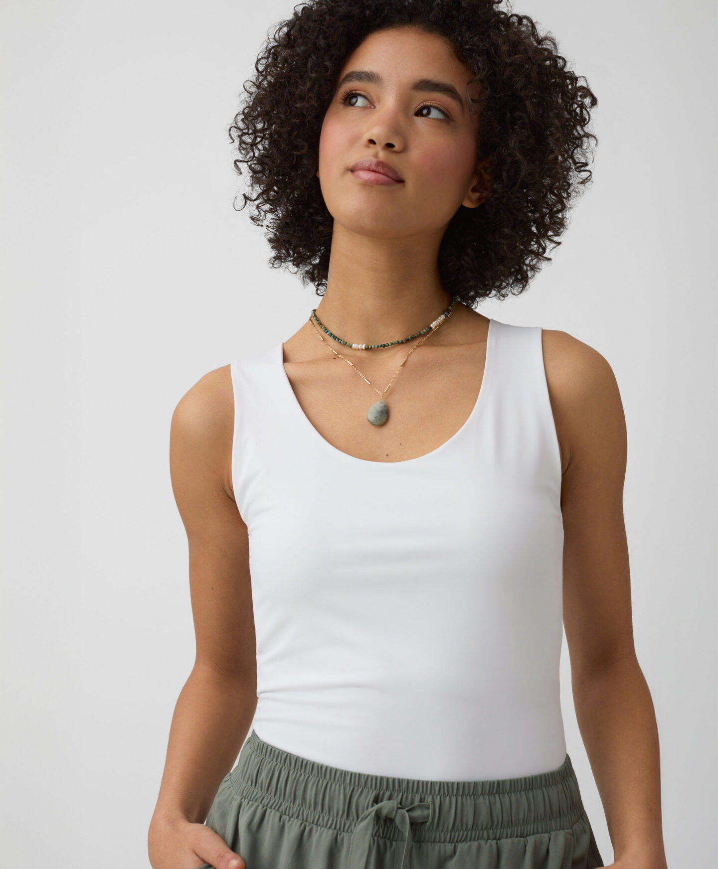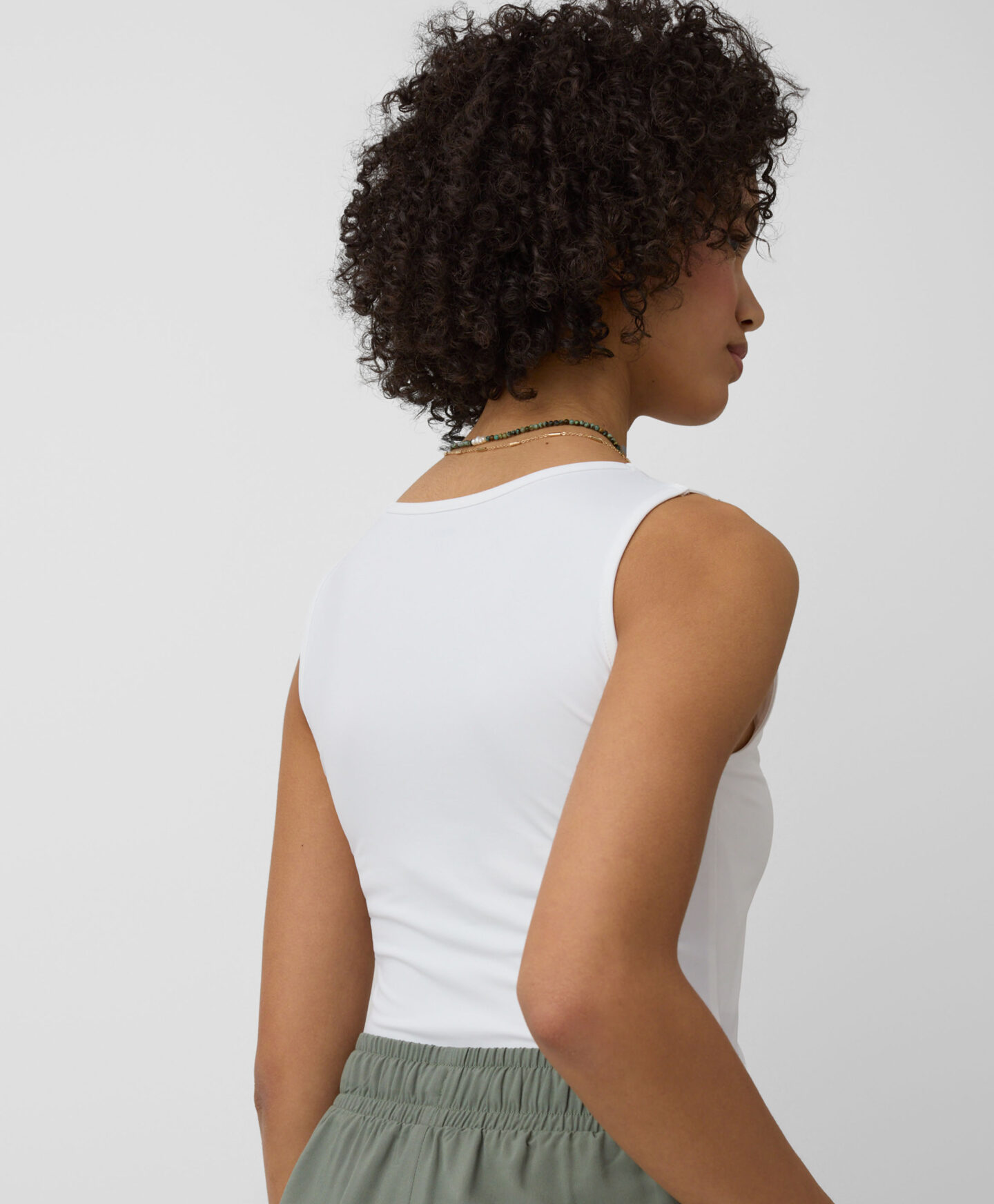 Този дамски бял топ е изключително универсален. Съчетава се добре с дънки, чинос, къси панталони и спортни панталони. Можеш да го носиш под яке или суитшърт. Гладката текстура и едноцветният цвят правят този топ основа за всеки успешен тоалет. Предлага се в три цветови варианта.