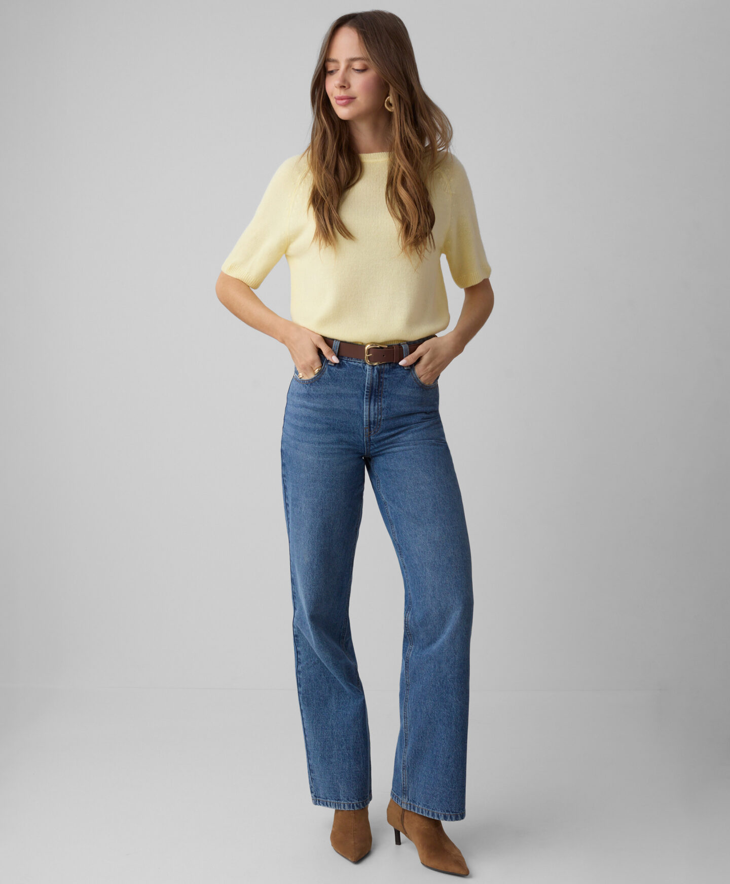 | Дамските дънки, изработени от 100% памук с широки крачоли, са основен елемент от гардероба на жените, независимо от сезона. Те изглеждат страхотно както с широка тениска, така и с елегантна бяла риза. Идеални за офиса, среща или излизане с приятели. Класическият син цвят предлага пълна свобода на стилизиране.: |
