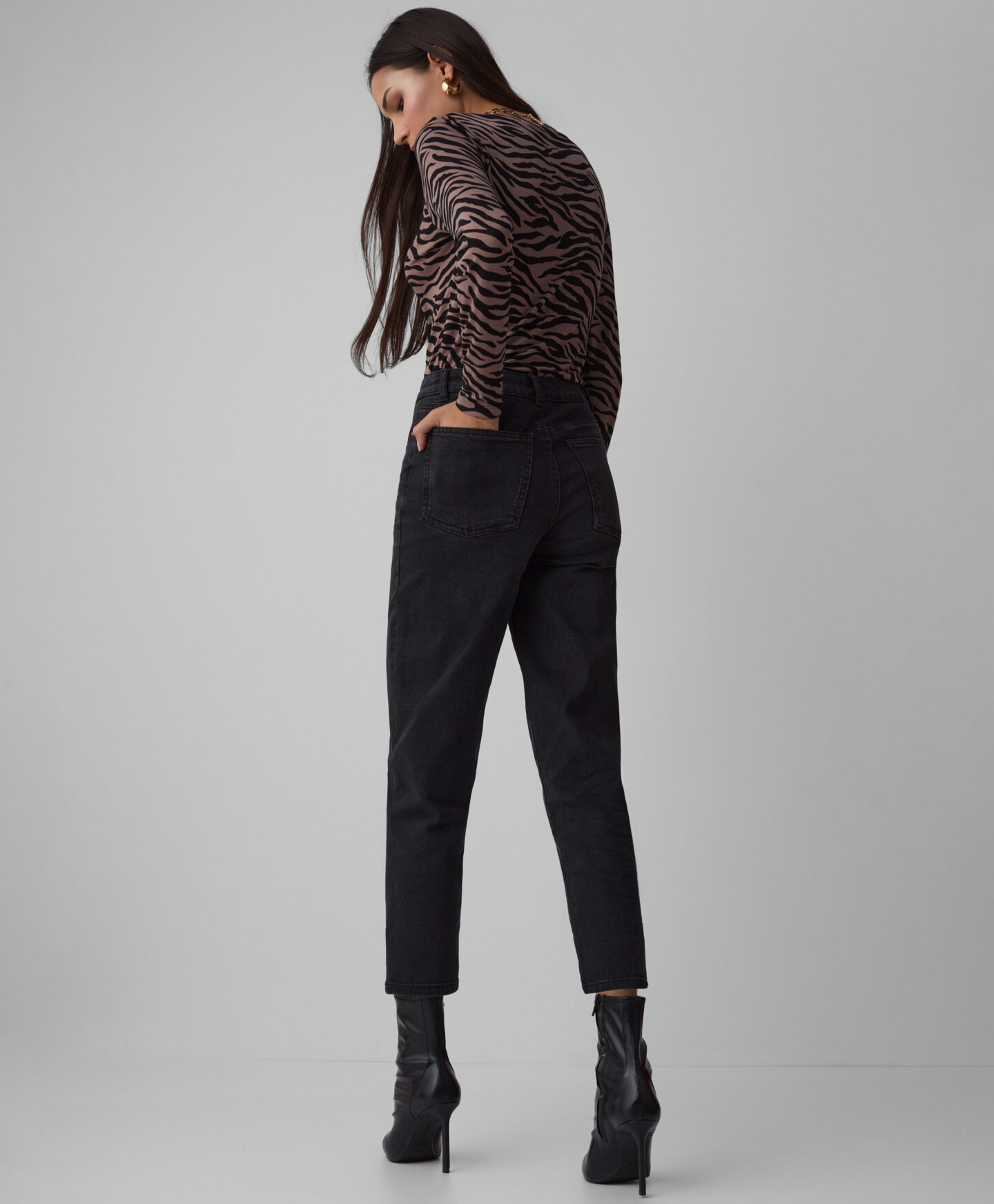 | Дамските дънки с кройка „mom jeans“ са вечен хит, който съчетава комфорт със стилен дизайн. Идеални за ежедневно носене, те се съчетават както с широки тениски, ежедневни пуловери, така и с по-елегантни ризи. Класическият черен цвят позволява да се съчетават с много дрехи.: |