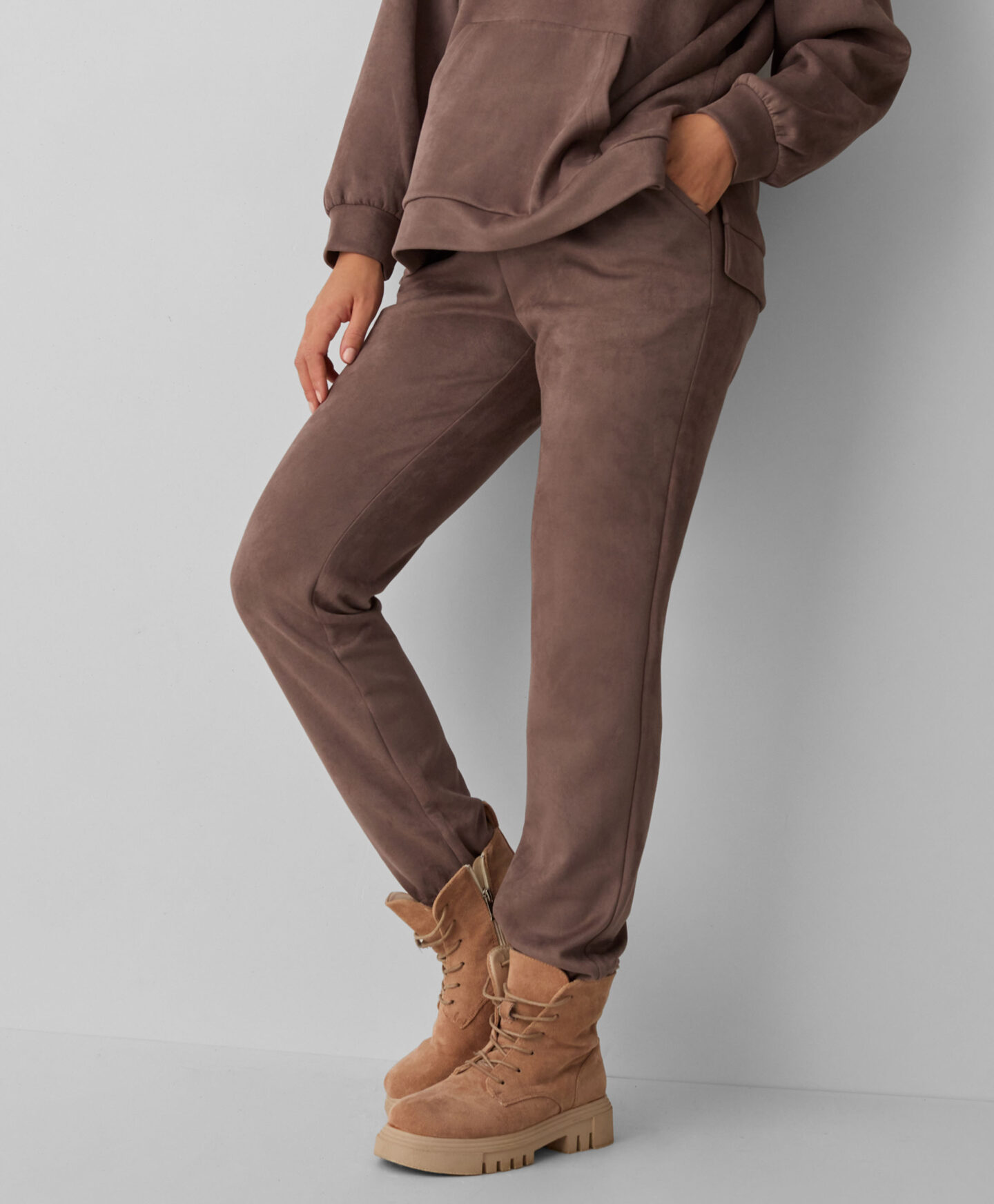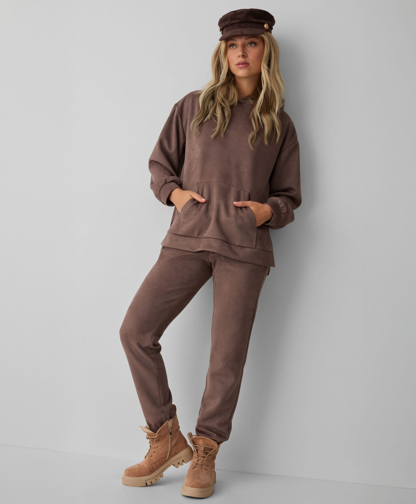 Дамски кафяви кадифени панталони с джобове са стилен и удобен ежедневен вариант. Панталоните са меки, приятни на допир и ще бъдат идеални за есенни разходки. Приглушеният нюанс на кафявото се съчетава перфектно с качулка от колекцията. Предлагат се различни модели, от които да избирате.