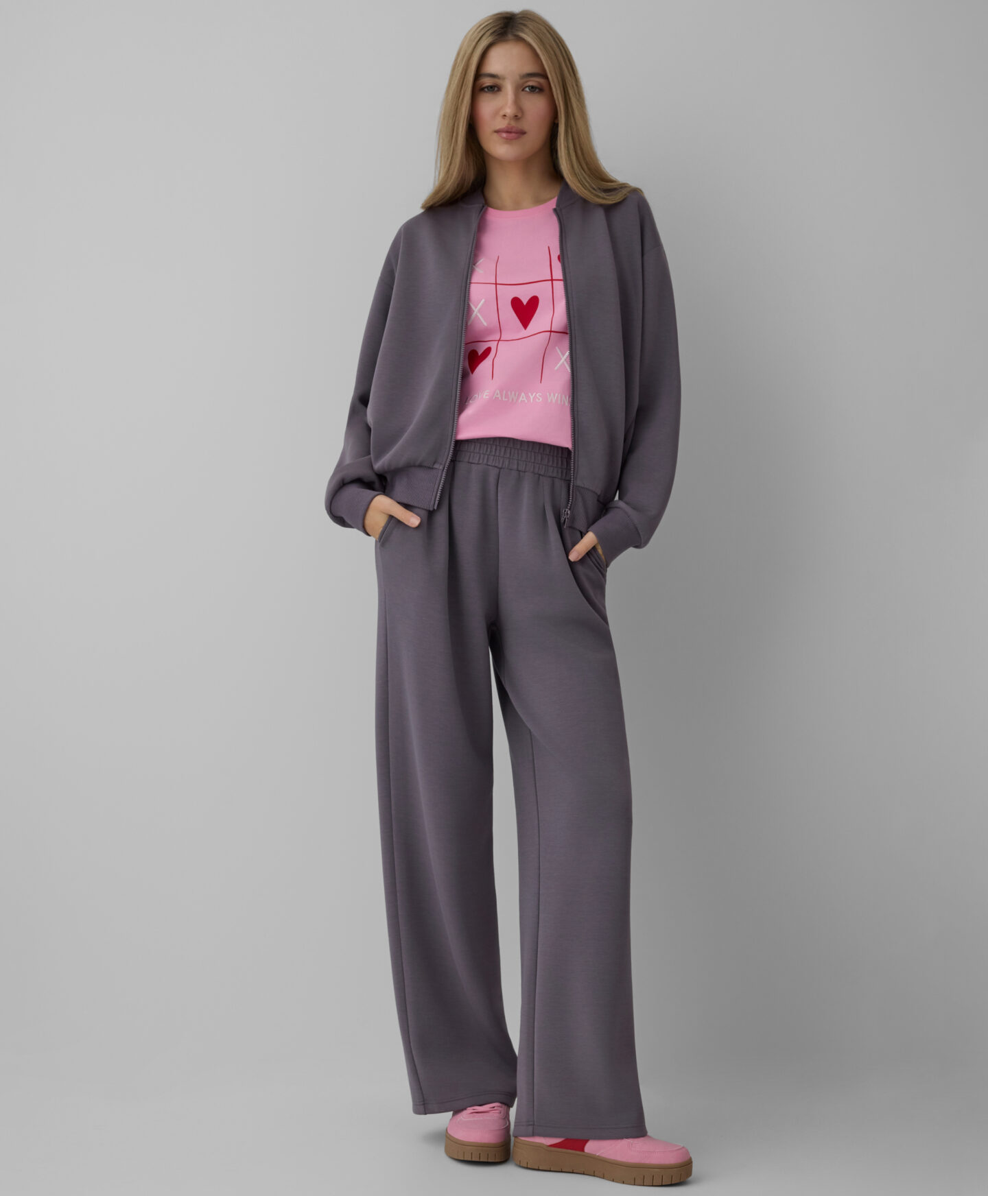 Дамският кафяв суитшърт с цип се съчетава перфектно с панталони от колекцията в същия цвят. Вижте го в Pepco!: