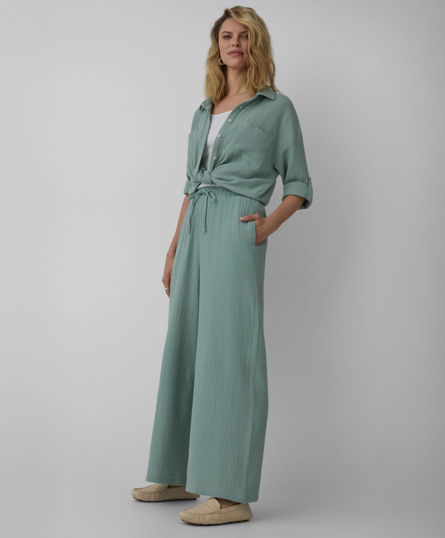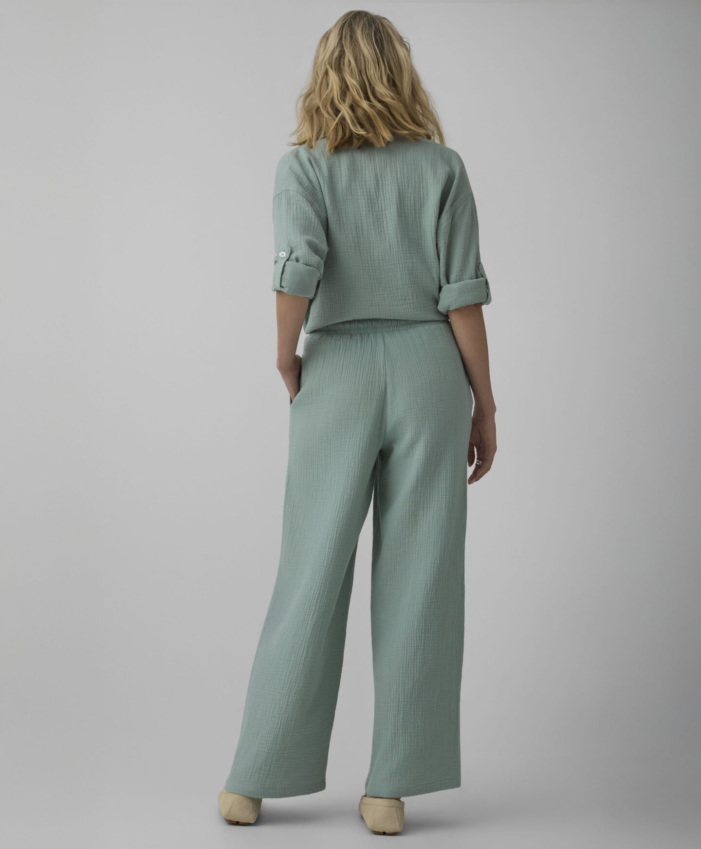 Дамските панталони от 100% памук предлагат изключителна мекота, лекота и дишане. Това е синоним на комфорт в стилно издание. Модният цвят привлича погледа и отличава панталоните от останалите. Можеш да ги носиш както за разходка на чист въздух, така и по време на релакс у дома. В колекцията се предлага и перфектно съчетана риза.