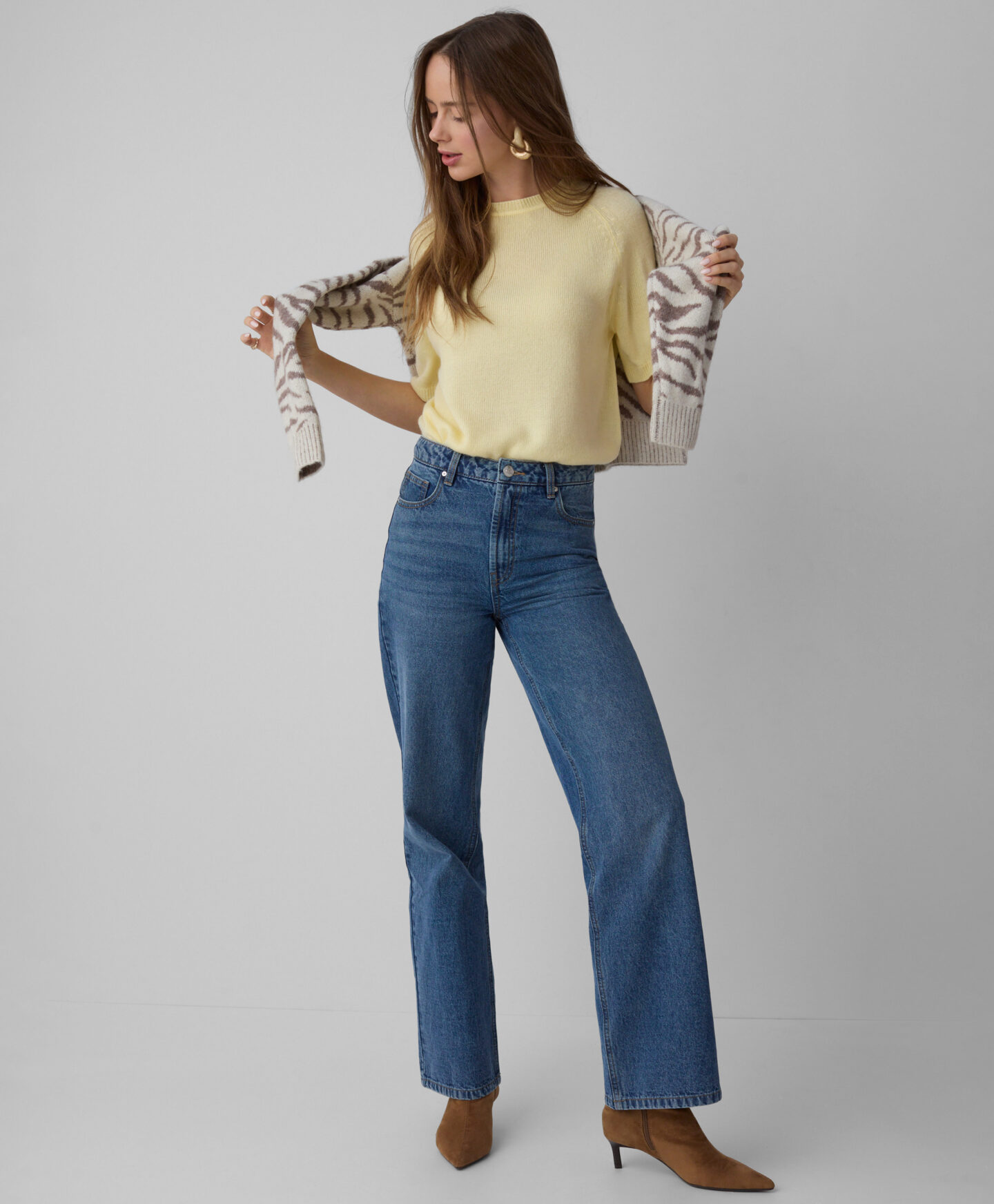 | Жълтият дамски пуловер с реглан ръкави предлага пълна свобода на движение. Можете да го комбинирате с пола, елегантен панталон или дънки и да се насладите на стилна комбинация във всяка ситуация. Предлагат се два цвята, от които да избирате.: |