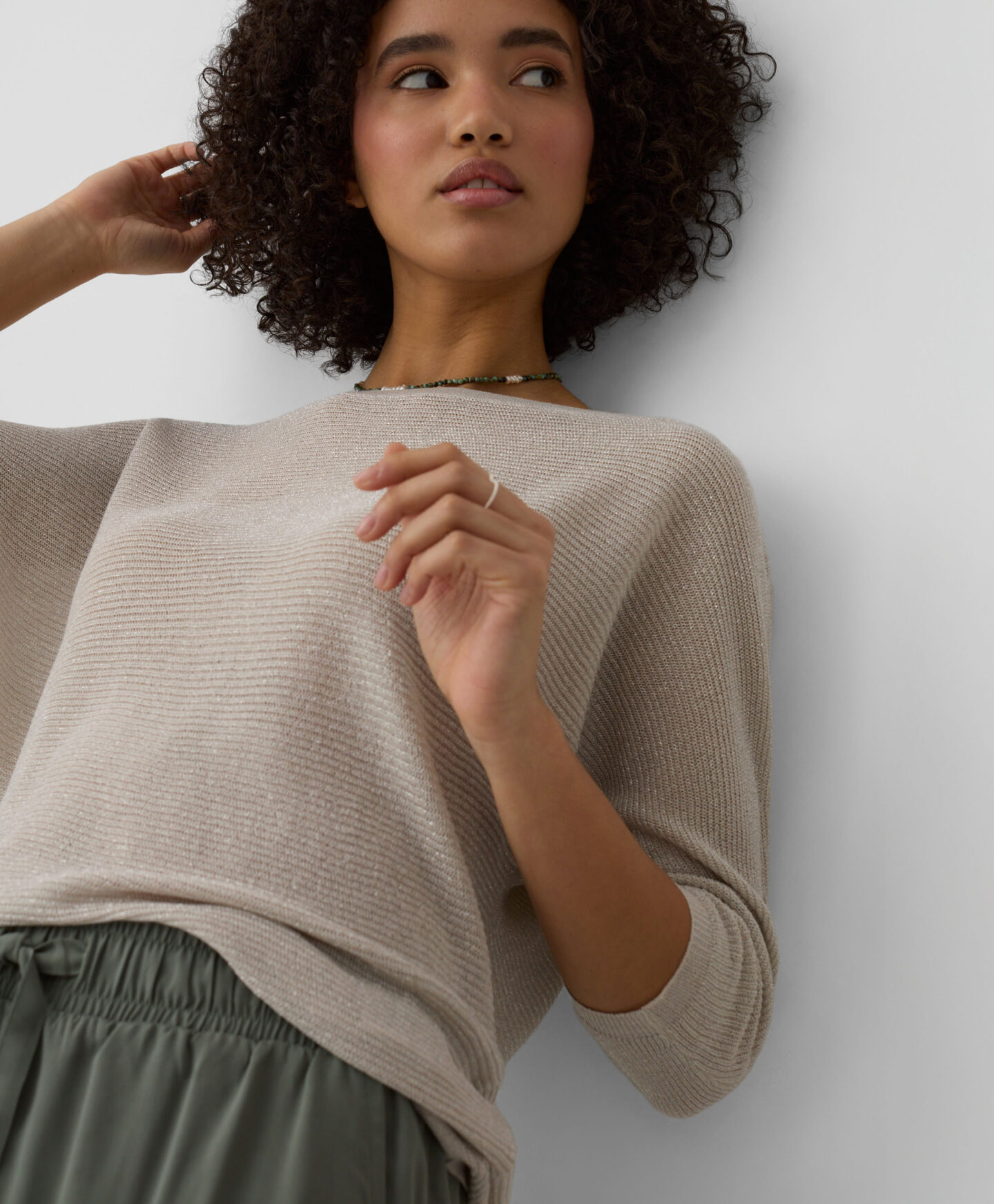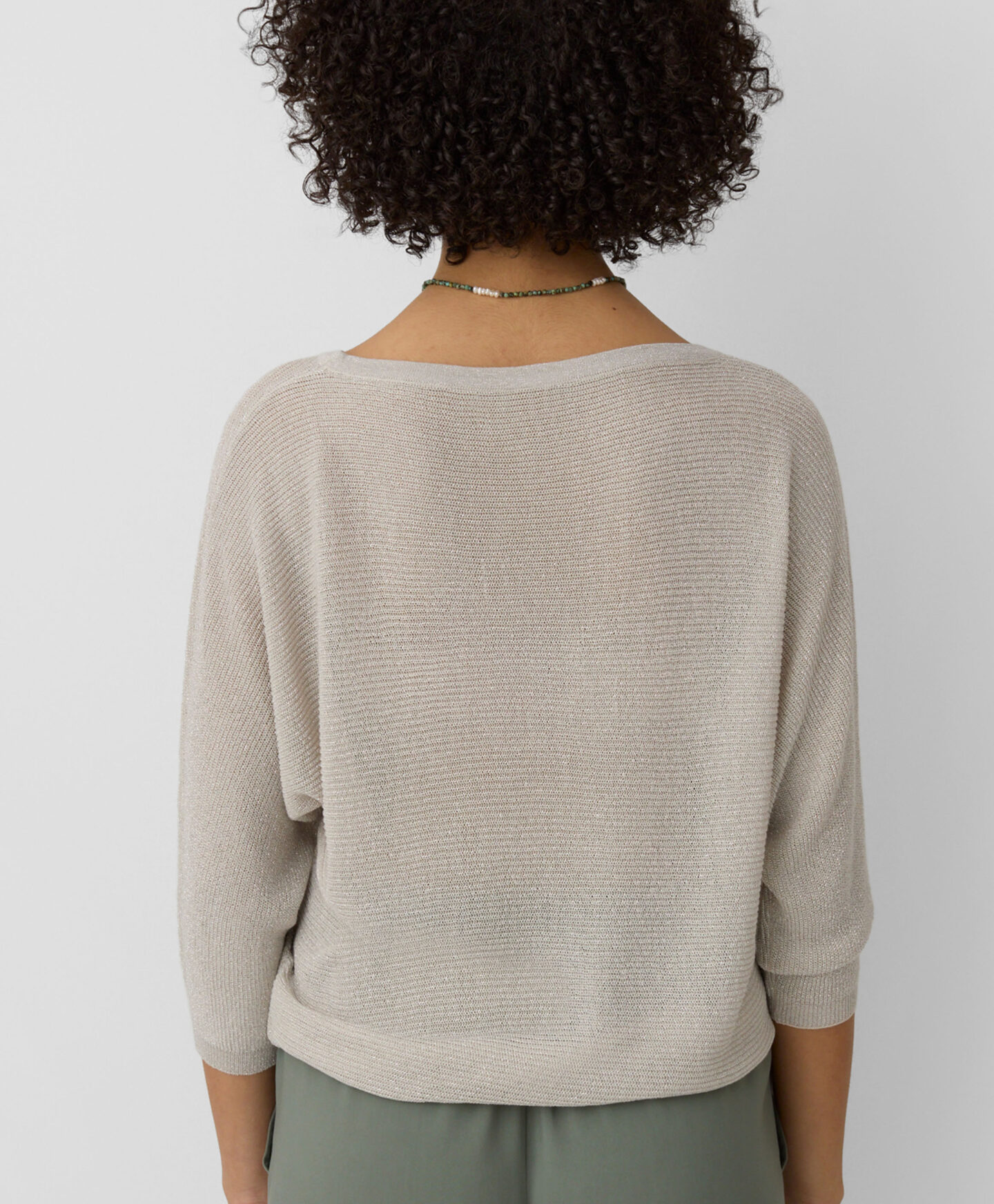 Този дамски пуловер от 100% вискоза ще добави нотка блясък към гардероба ти! Той е лек, ефирен и позволява на кожата да диша. Свободната кройка тип кимоно осигурява лекота на носене и комфорт при всяко движение. Пуловерът изглежда страхотно в комбинация с елегантен панталон или пола.