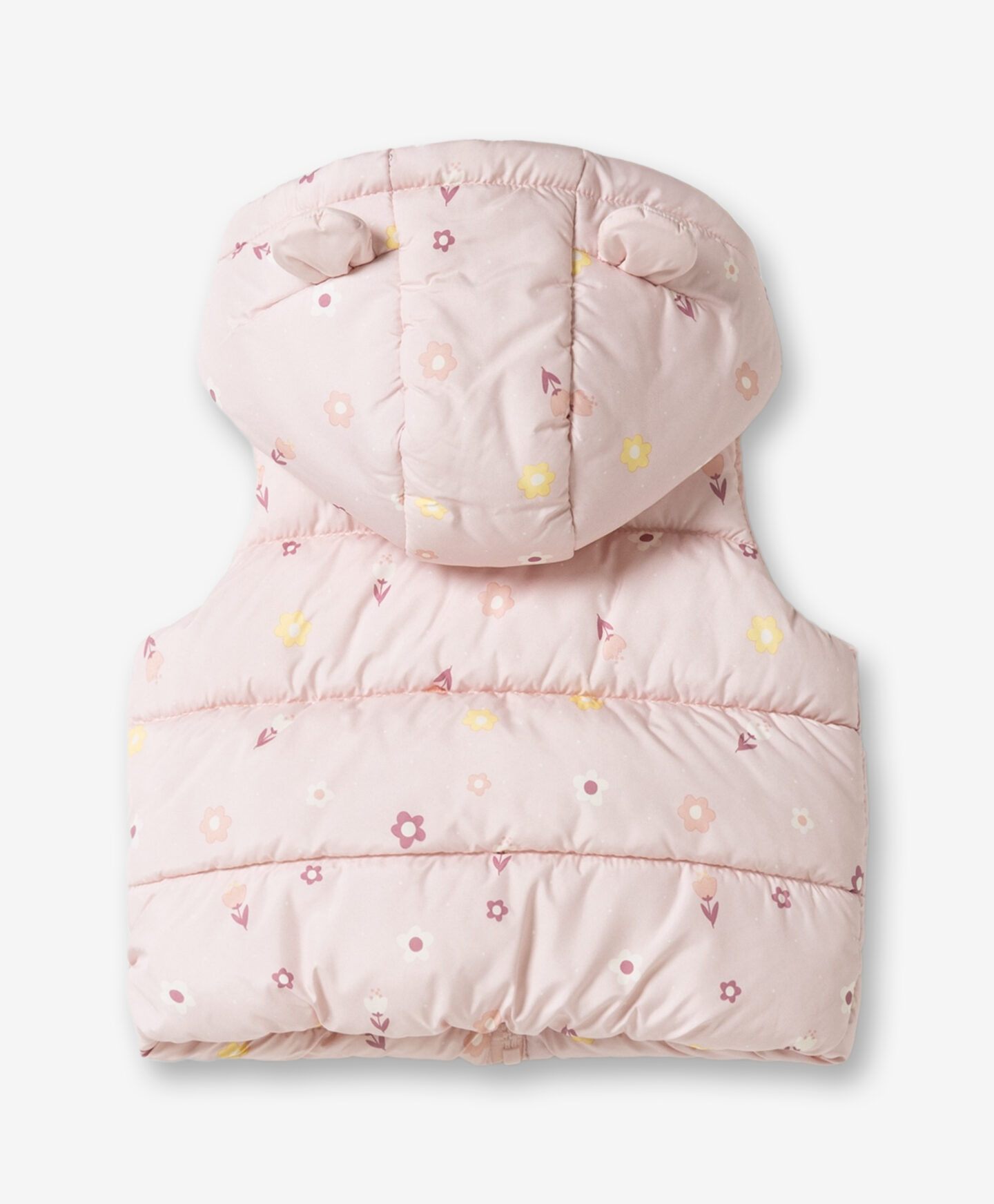 Елекът за бебе с флорален мотив за момиченца е идеален за стилно мъниче. Лек е, мек и топъл. Качулката с уши е не само очарователна, но и ще държи детето ви топло в по-студените дни. Този елек ще изглежда страхотно върху пуловер или суитшърт, като ще сгуши уютно вашето мъниче по време на разходки с количката или игра в пясъчника. Класическата кройка позволява неограничено движение.