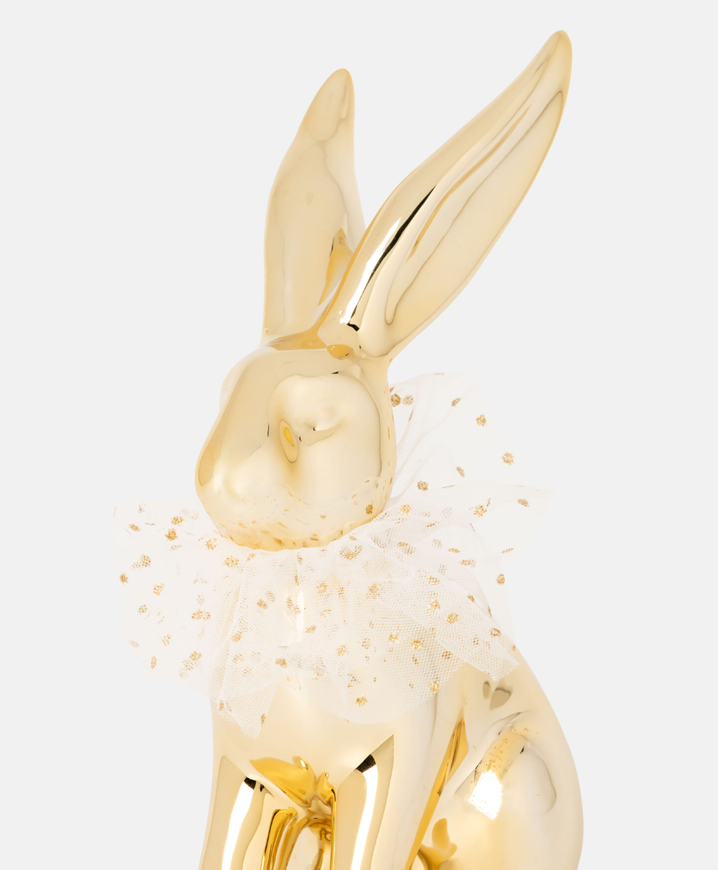 Зайчето с яка в размер L е впечатляваща декорация, която привлича погледа. Златистият му цвят привлича вниманието, а лъскавото покритие изглежда изключително елегантно. Яката добавя нотка лекота, което прави зайчето подходящ подарък за любителите на красивите неща.