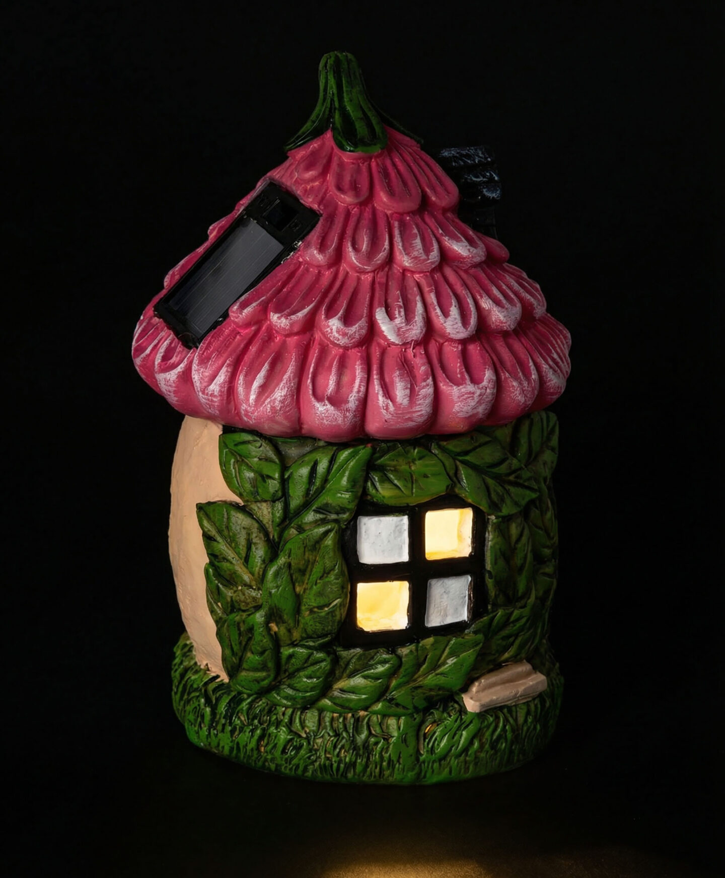 Зелената соларна лампа за къща е очарователна декорация, която ще ти помогне да създадеш магическа атмосфера на твоята тераса или балкон всяка вечер. Захранвана от слънчева енергия, благодарение на вграден соларен панел, тя елиминира нуждата от кабели или батерии, като същевременно пести електричество. Лампата се включва автоматично привечер и се изключва призори, осигурявайки осветление през цялата нощ без допълнителни действия. Изработена от издръжливи, устойчиви на атмосферни влияния материали.