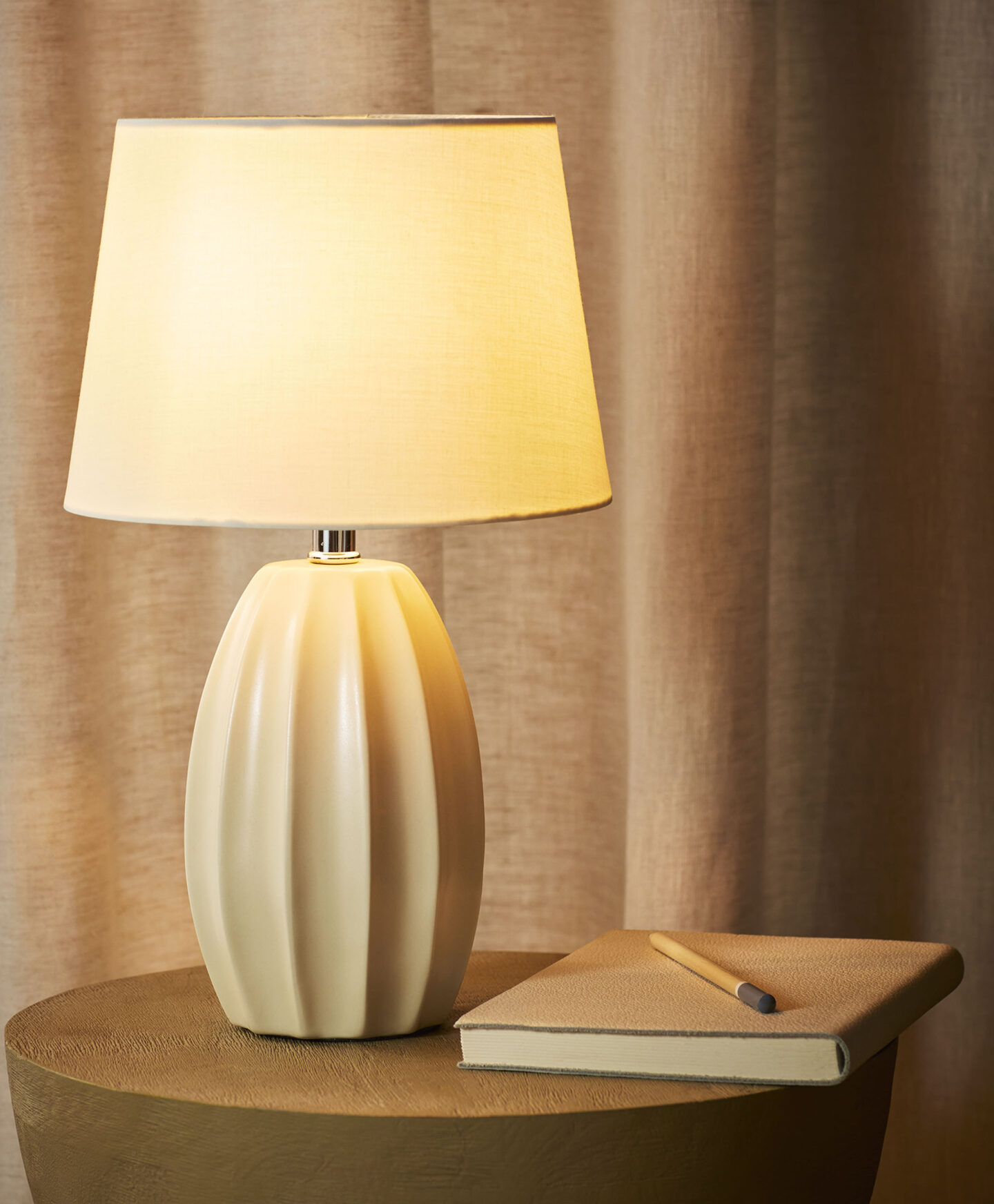 Керамичната настолна лампа е не само практичен елемент от обзавеждането на дома, но и красива декорация. Топлата ѝ светлина е идеална за вечерна релаксация. Универсалният дизайн на лампата и приглушените ѝ цветове я правят подходяща за хол, кабинет или коридор.