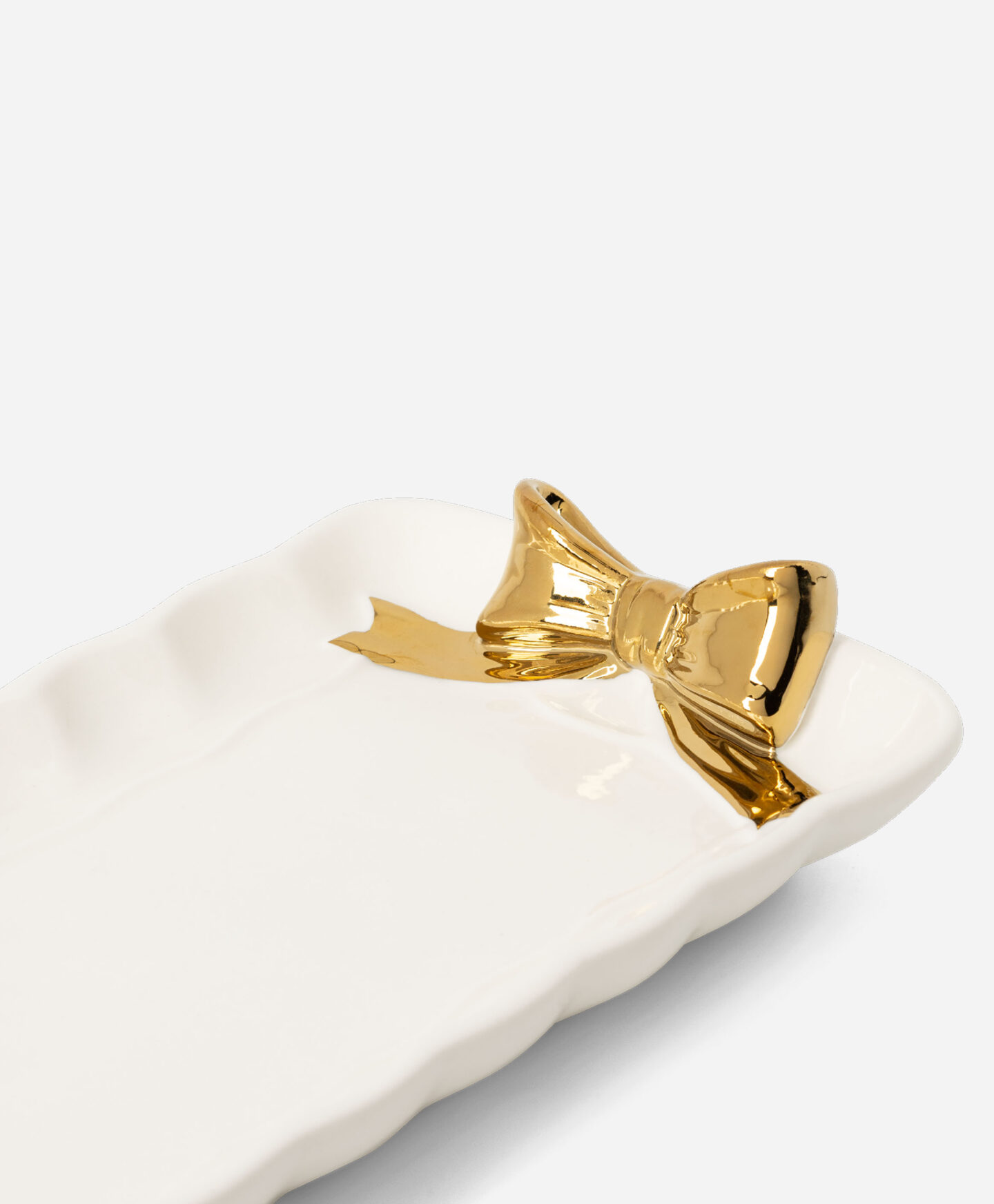 Керамичната чиния за сервиране на торта с декоративни златни панделки е олицетворение на елегантност и добър стил. Изработена от издръжлива керамика, тя е не само лесна за почистване, но и изглежда красиво на масата. Гланцовото покритие отразява светлината, което прави чинията централна точка на аранжировката. Идеална за сервиране на торта, плодове или закуски на вашите гости.