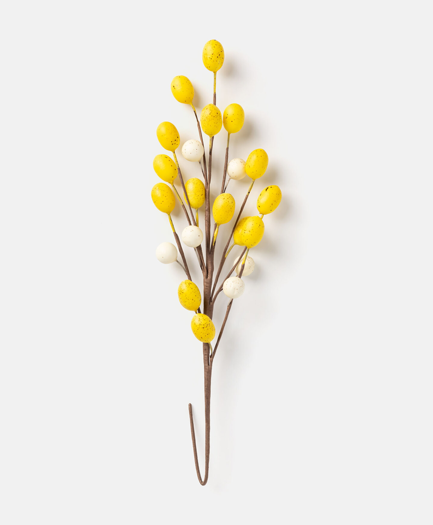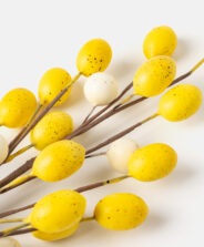Клонче с жълти великденски яйца ще създаде великденска атмосфера във всеки интериор. То е подходящо както за елемент от кошница, така и за празнична украса на маса. Поставете го в саксия или го аранжирайте небрежно върху покривка за маса, за да радва окото по време на великденска закуска.