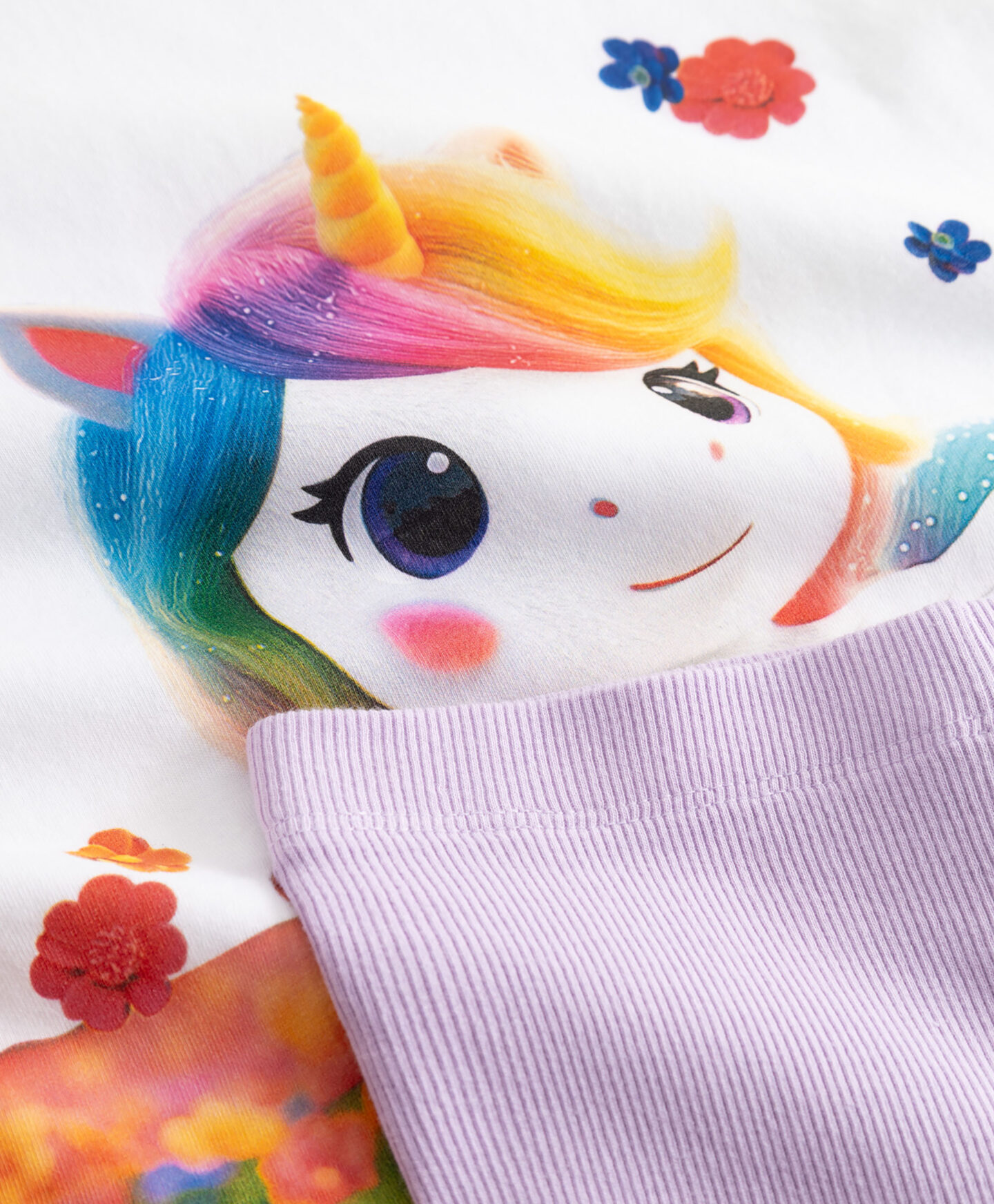 Комплектът за момичета с еднорог се състои от тениска и велосипедни къси панталони. Тениската е изработена от мек памучен материал, който е приятен на допир, а графиката с еднорог отпред ще плени сърцето на всеки малък любител на тези приказни създания. Клинът с високо съдържание на памук е еластичен и приляга красиво по фигурата, без да ограничава движението и играта. Предлагат се различни модели.