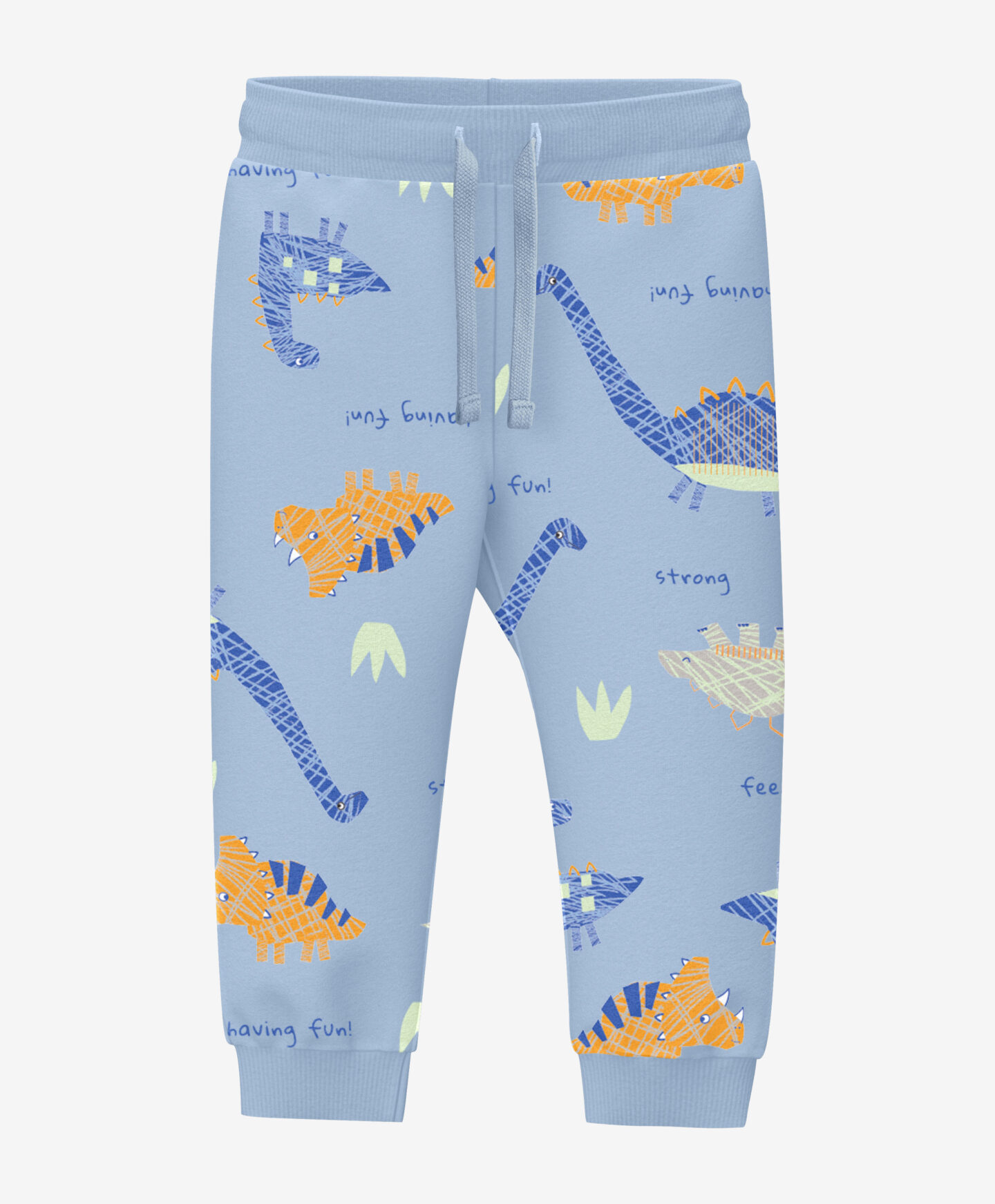 Комплект от 2 бебешки панталона за момченца с дизайн на динозавър, изработени от 100% памук, е задължителен артикул за новороденото. Панталоните са меки и приятни за кожата, като всеки чифт е с различен модел. Панталоните са завършени с еластични маншети и се завързват на талията, което им позволява да се адаптират към фигурата на всяко дете. Предлагат се и съответстващи суитшърти.
