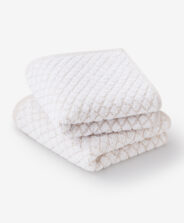 Комплектът от 2 бели кърпи 100% памук с размери 30 x 50 см е идеален за подсушаване на ръцете или лицето след измиване. Мекият памук е изключително абсорбиращ и приятен на допир. Приглушеният цвят ще се впише идеално във вашата баня. Предлага се в два цветови варианта.