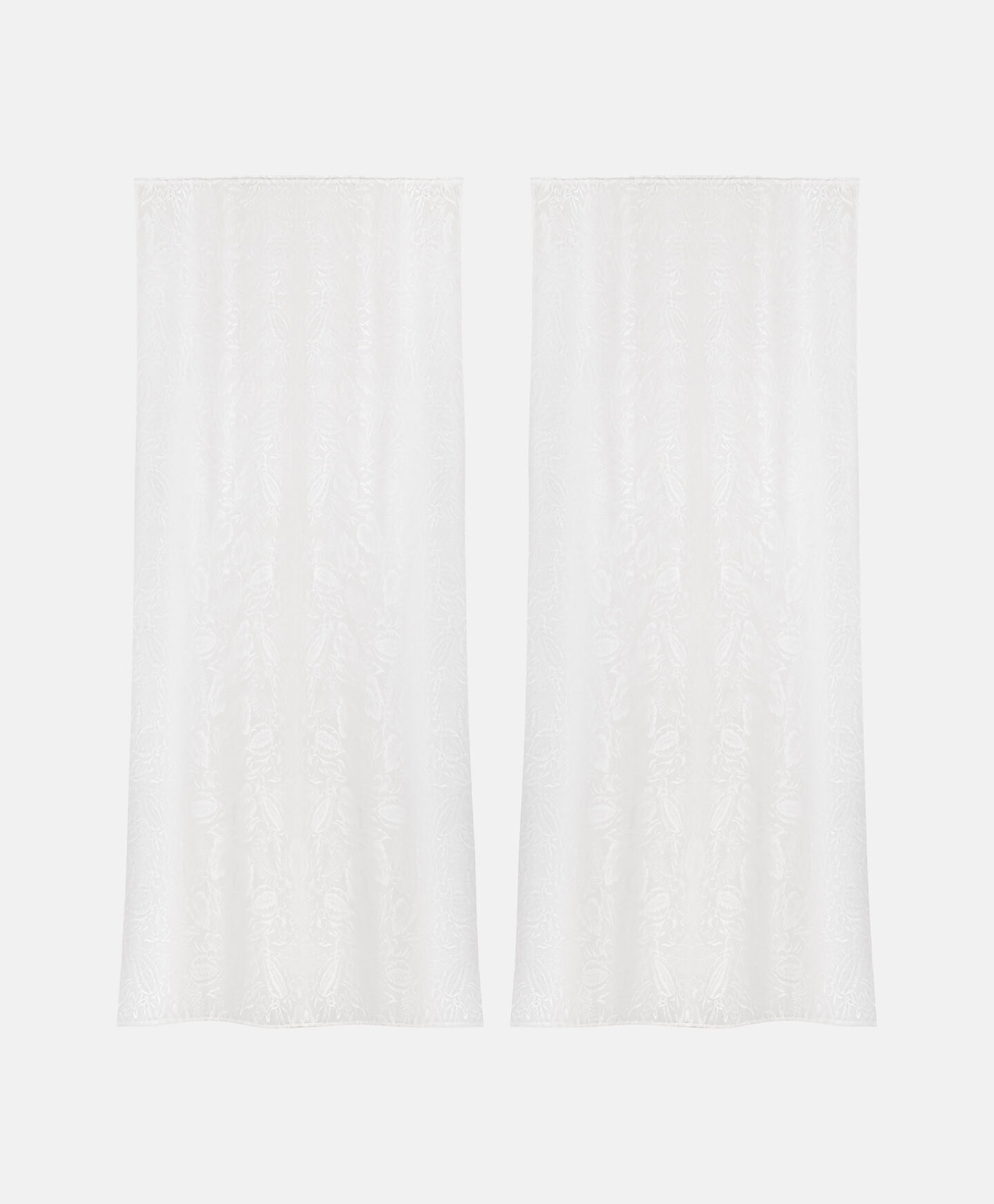 Този комплект от 2 завеси е олицетворение на вечен стил. Те съчетават ефирността на деликатната материя с декорация, която добавя дълбочина към стаята. Моделът не доминира в стаята, но когато е изложен на слънчева светлина, създава красива текстура и фини сенки върху плата. Материалът се спуска нежно върху прозореца, създавайки естествени вълни. Устойчив е на намачкване и лесен за поддръжка.