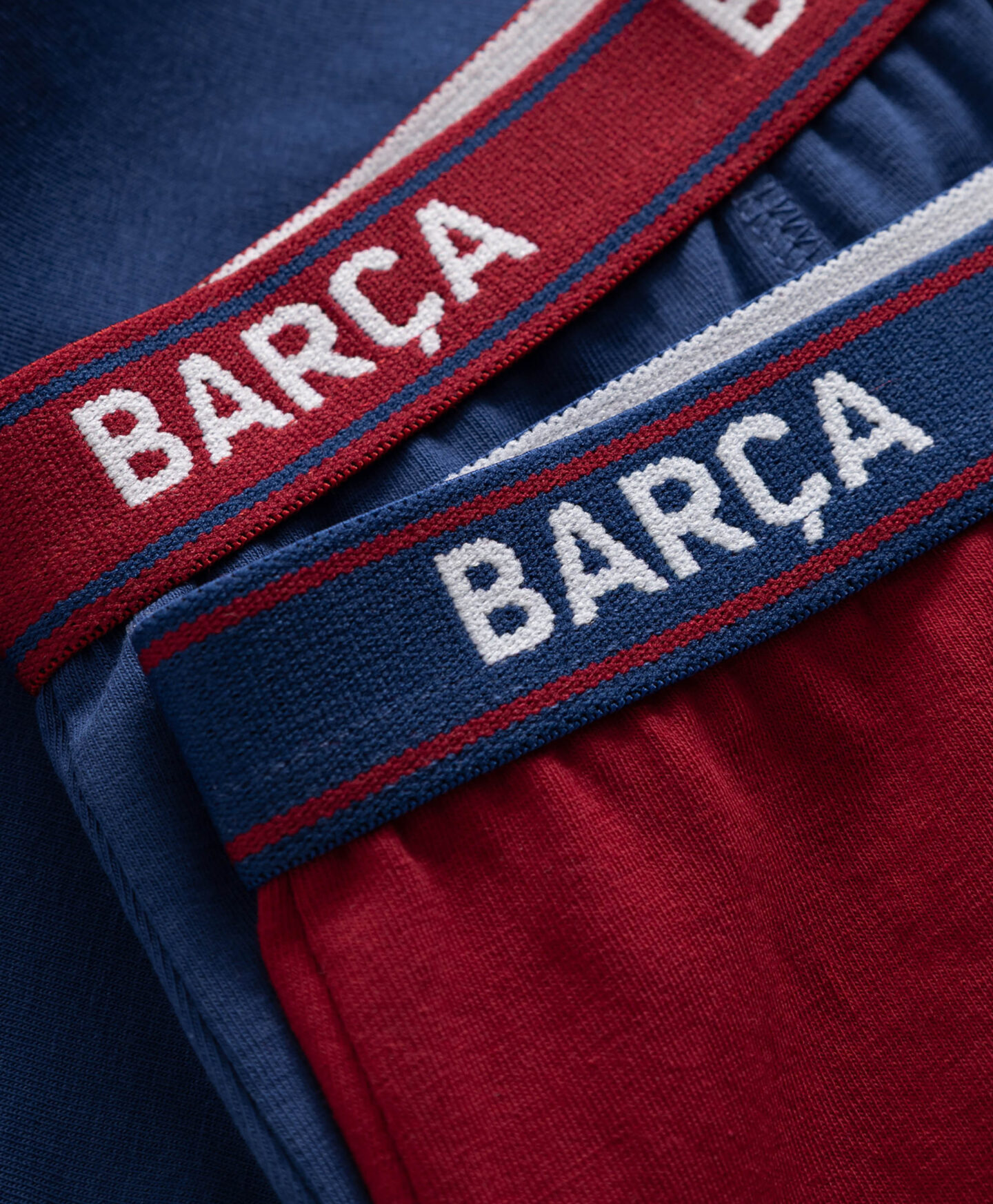 Този комплект от 2 чифта боксерки за момчета на FC Barcelona с високо съдържание на памук гарантира ежедневен комфорт. Класическата кройка не ограничава движенията. Включени са два модела.