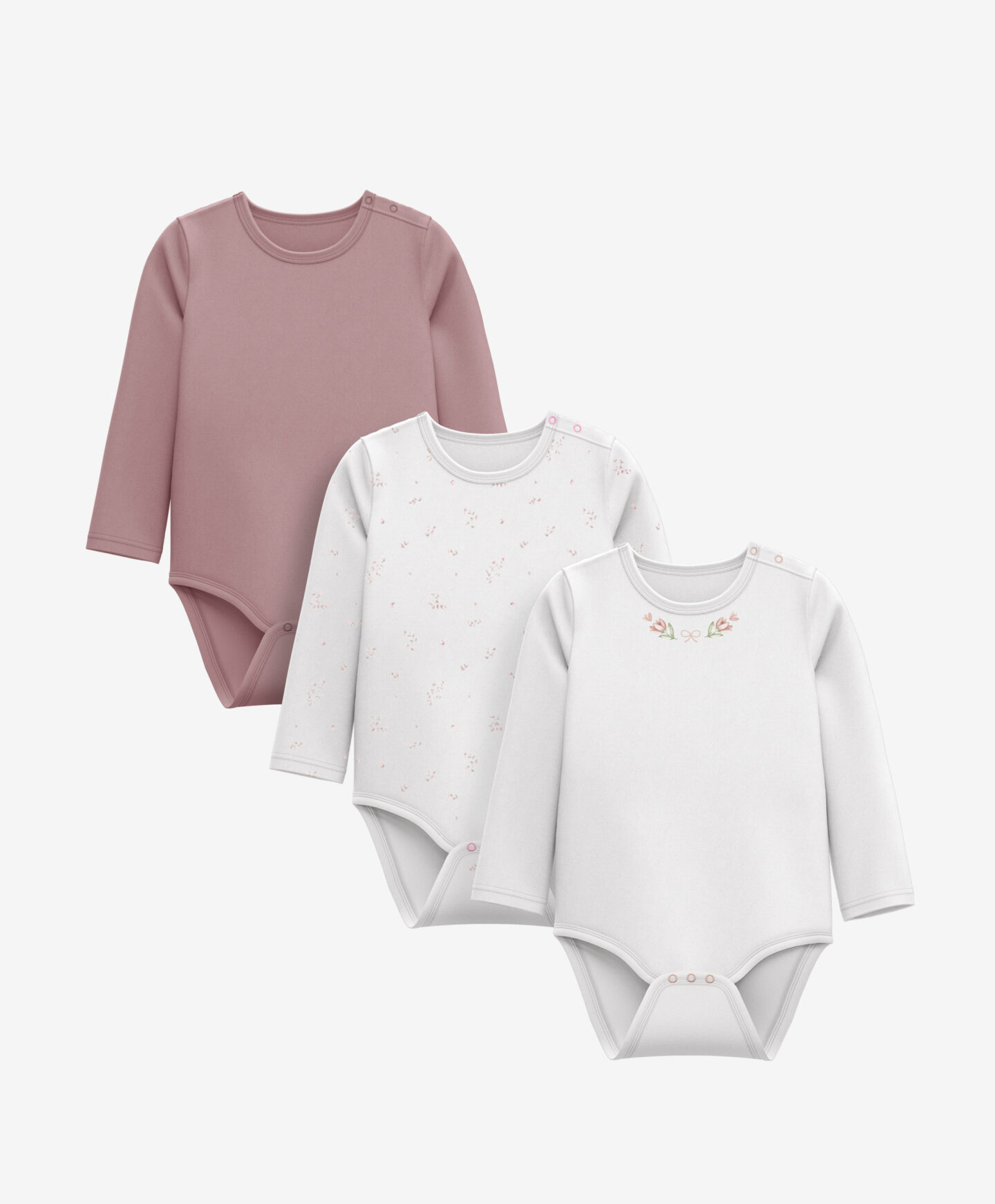 Комплект от 3 бодита за бебешки момичета, 100% памук, цвете